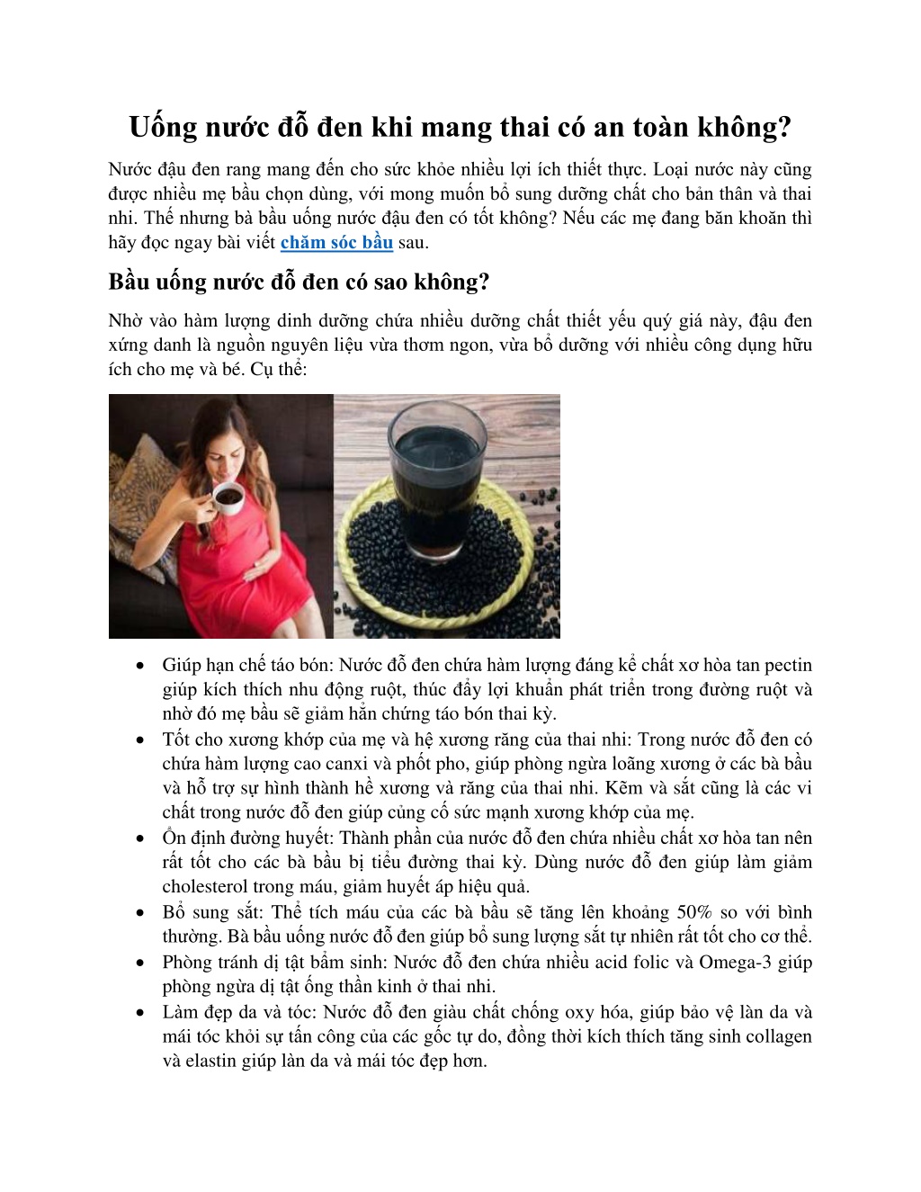 Uống nước đỗ đen khi mang thai có an toàn không