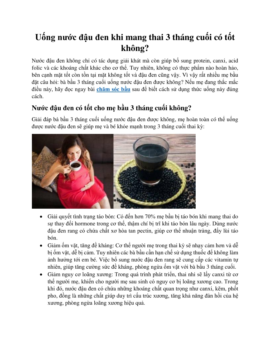 Uống nước đậu đen khi mang thai 3 tháng cuối có tốt không