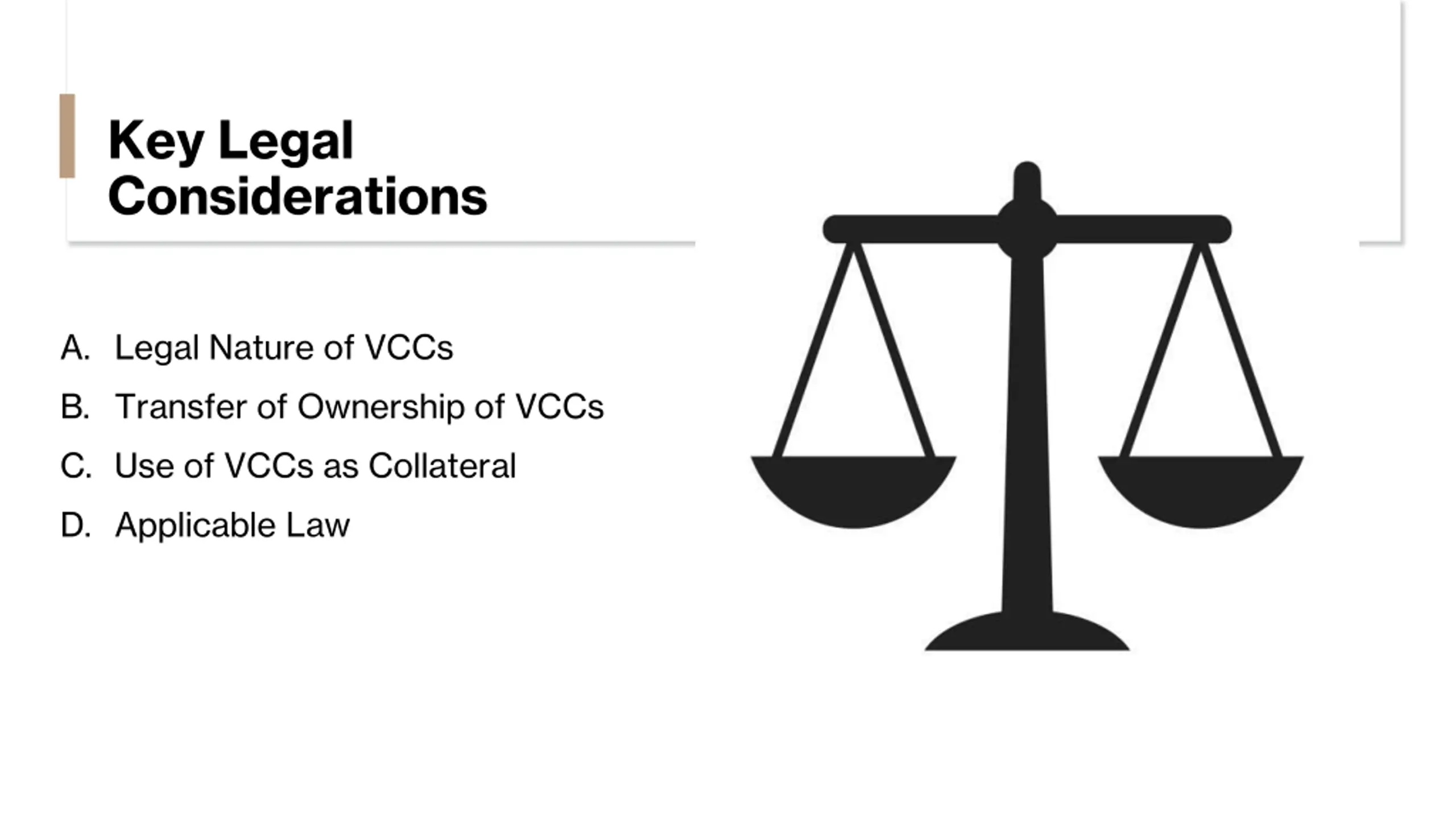 Key Legal Considerations A. Legal Nature of VCCs B. Transfer of Ownership of VCCs C. Use of VCCs as Collateral D. Applicable Law