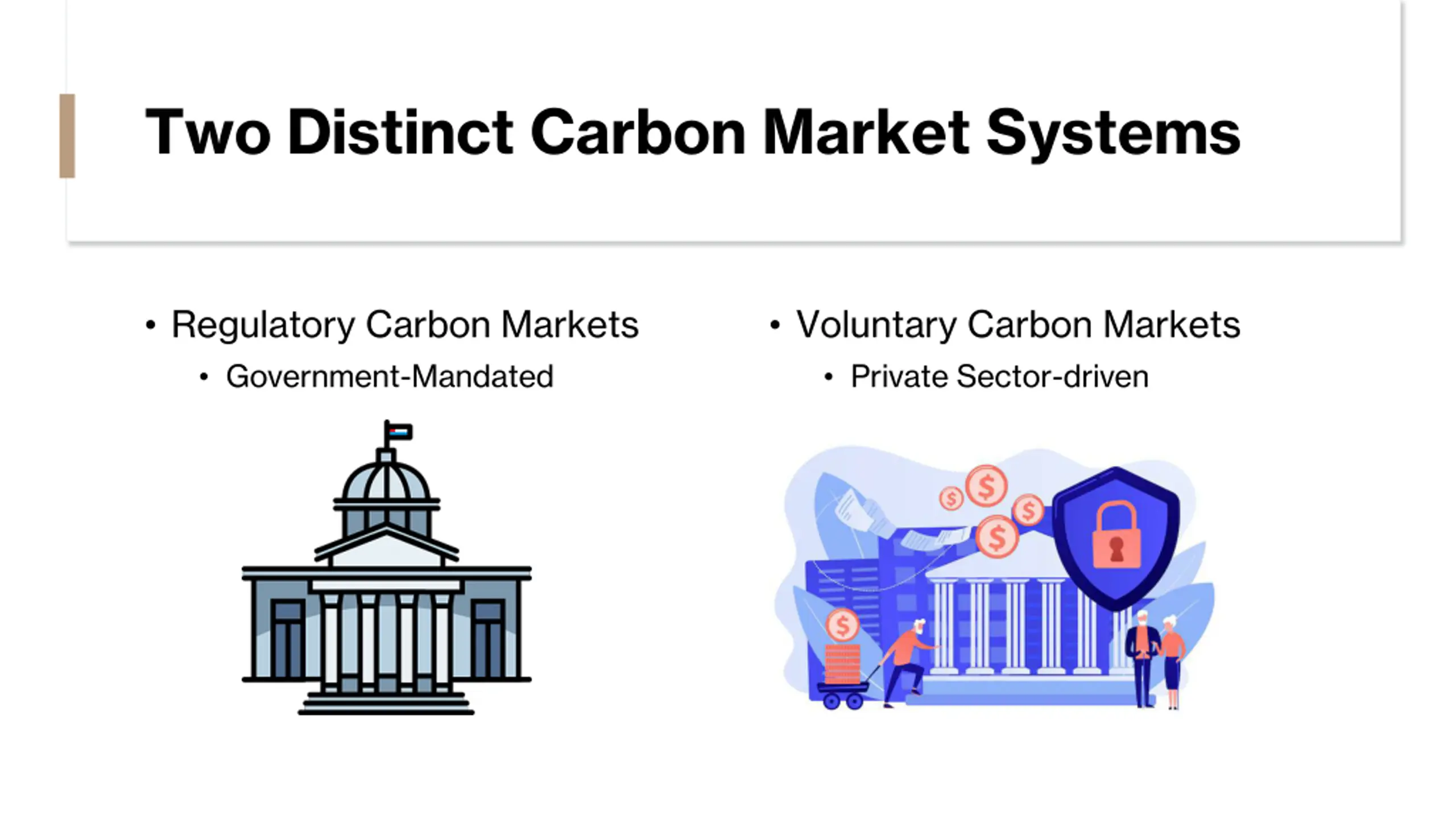 Two Distinct Carbon Market Systems Regulatory Carbon Markets Government-Mandated Voluntary Carbon Markets Private Sector-driven
