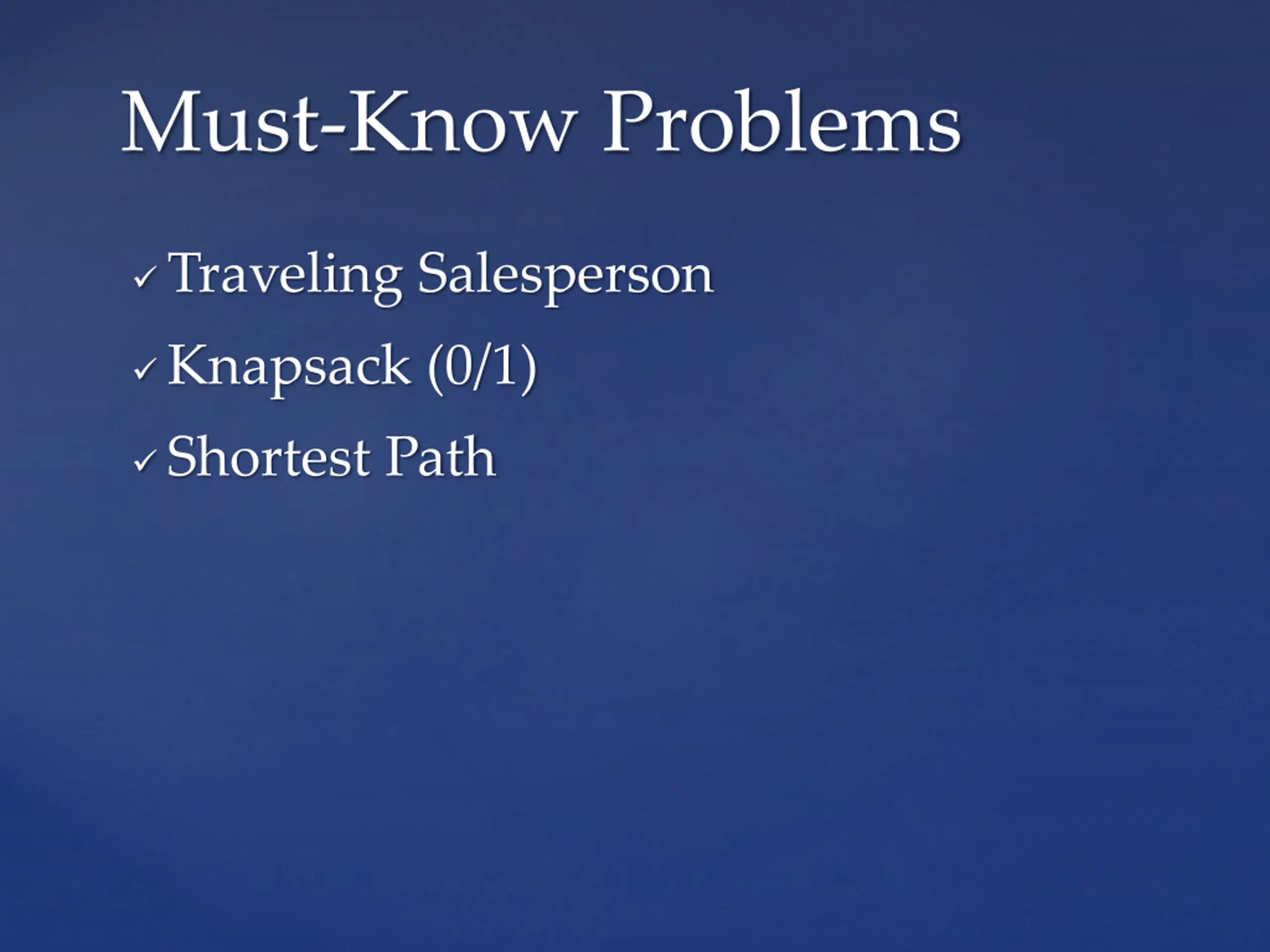 Must-Know Problems Traveling Salesperson Knapsack (0/1) Shortest Path