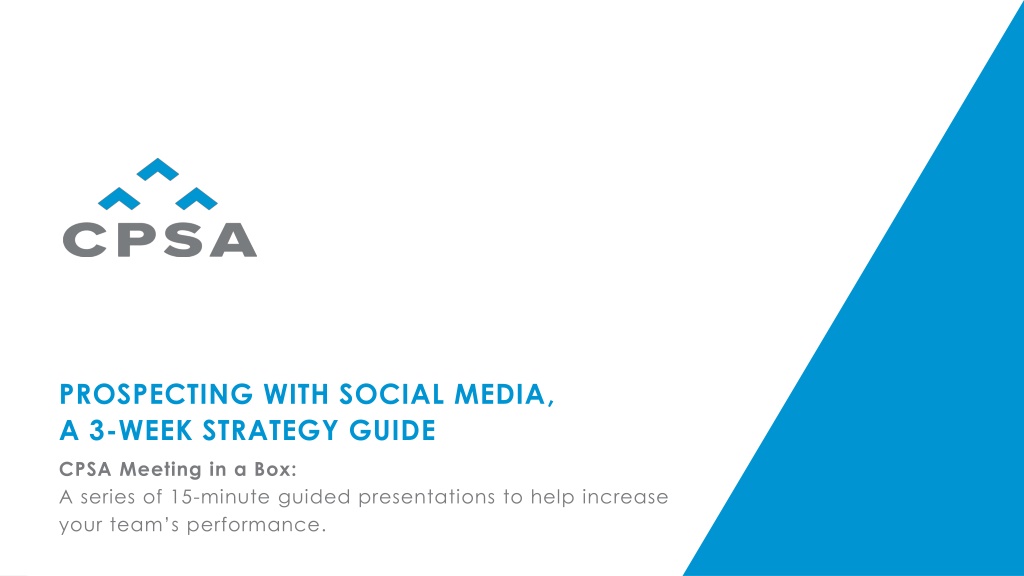 PROSPECTING WITH SOCIAL MEDIA, A 3-WEEK STRATEGY GUIDE CPSA Meeting in a Box: A series of 15-minute guided presentations to help increase your team s performance.