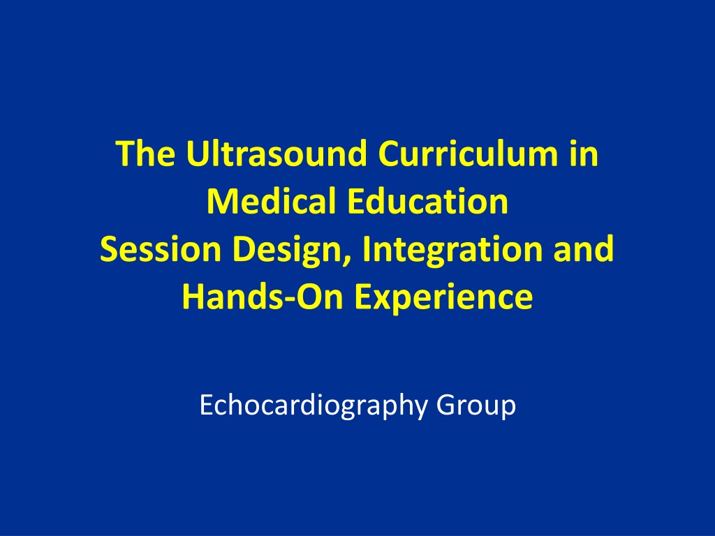 The Ultrasound Curriculum in Medical Education Session Design, Integration and Hands-On Experience Echocardiography Group