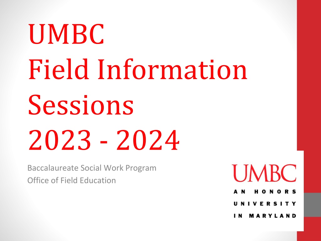 UMBC Field Information Sessions 2023-2024 Baccalaureate Social Work Program