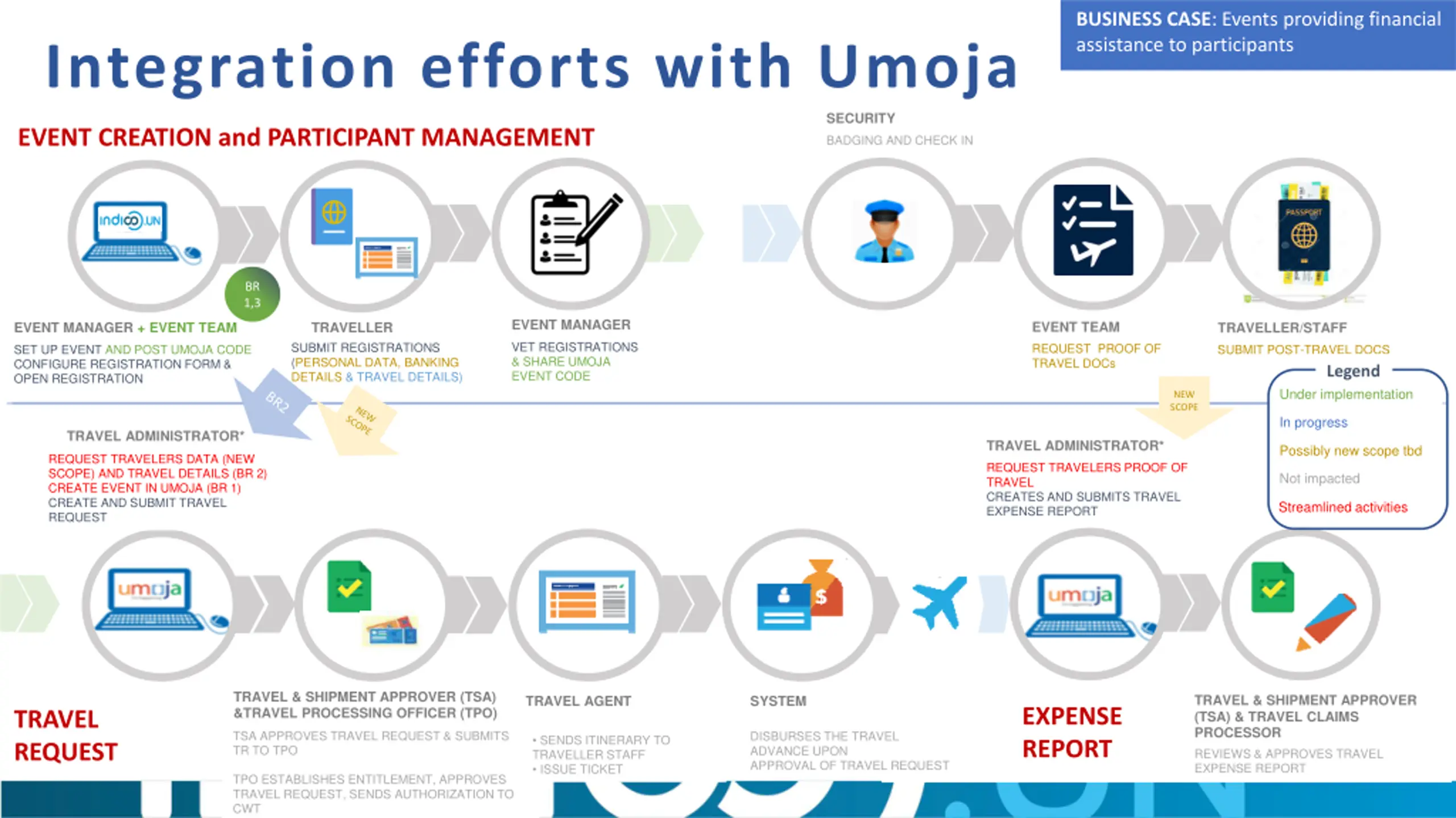 Explore the comprehensive integration of Umoja for managing travel, events, and financial assistance within the UN system. Benefit from consolidated processes, enhanced data quality, and improved compliance with UN regulations.
