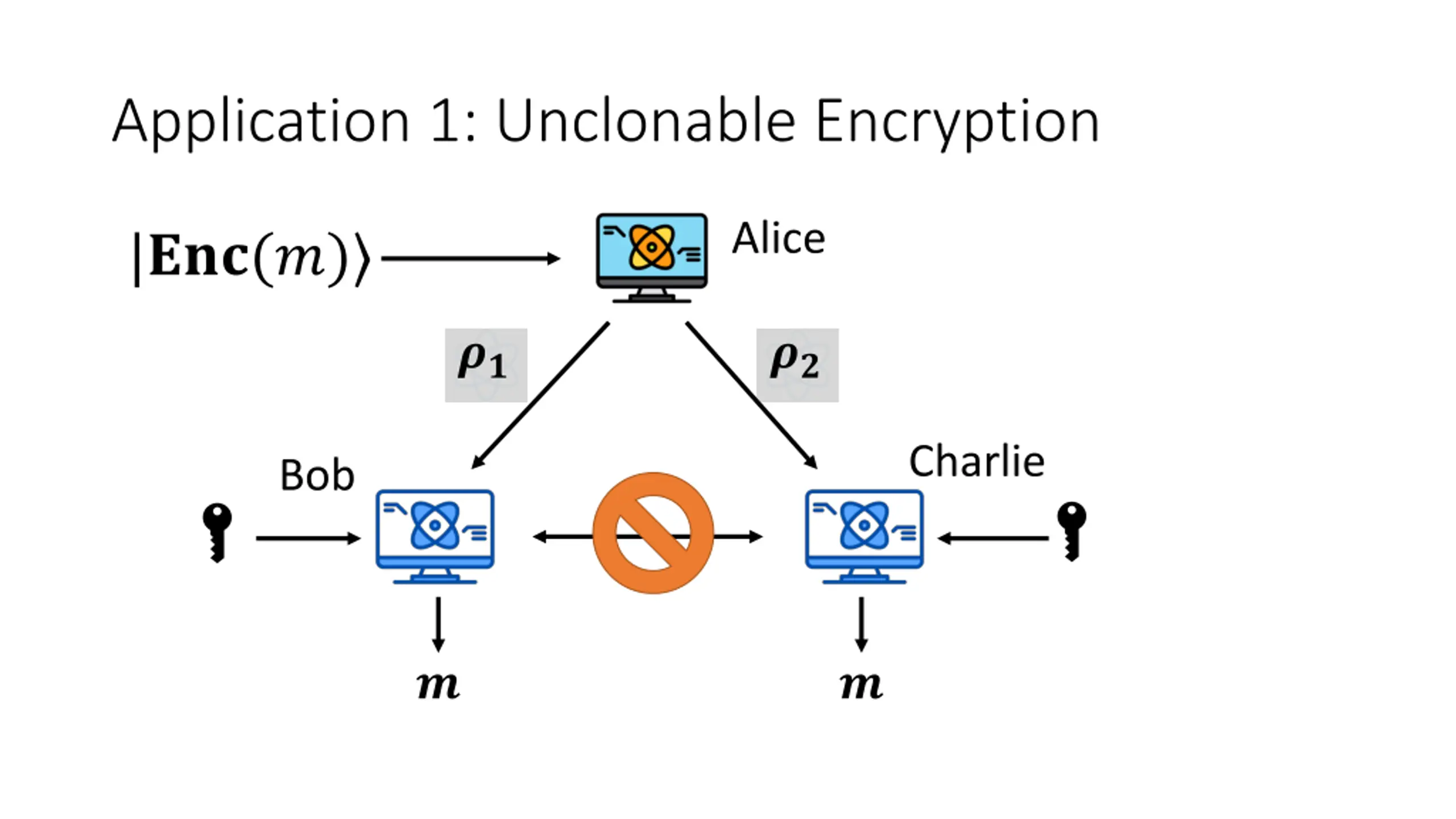 Application 1: Unclonable Encryption Alice |???(?) ?? ?? Charlie Bob ? ?