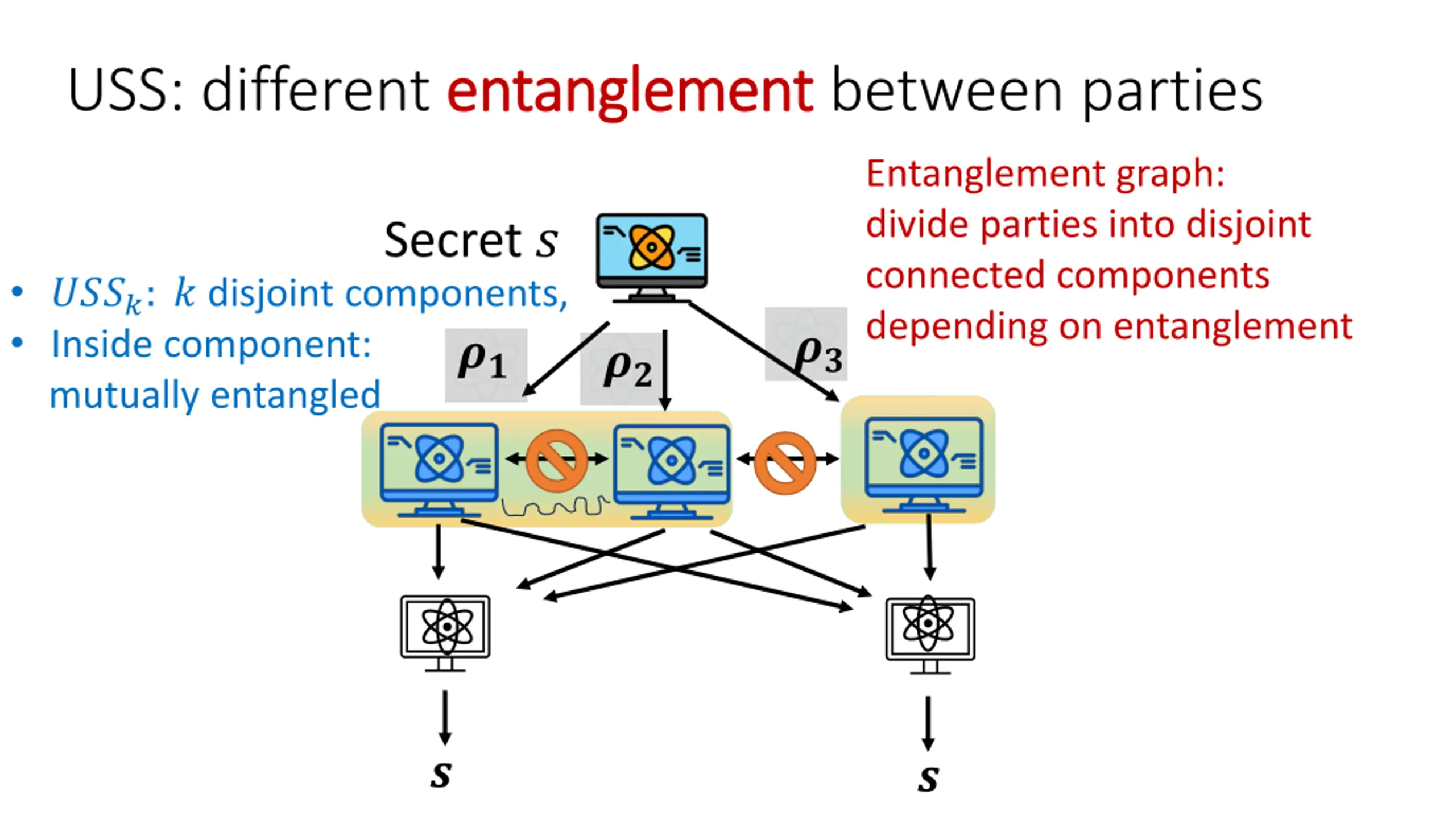 USS: different entanglement entanglement between parties Entanglement graph: divide parties into disjoint connected components depending on entanglement Secret ? ????: ? disjoint components, Inside component: mutually entangled ?? ?? ?? ? ?