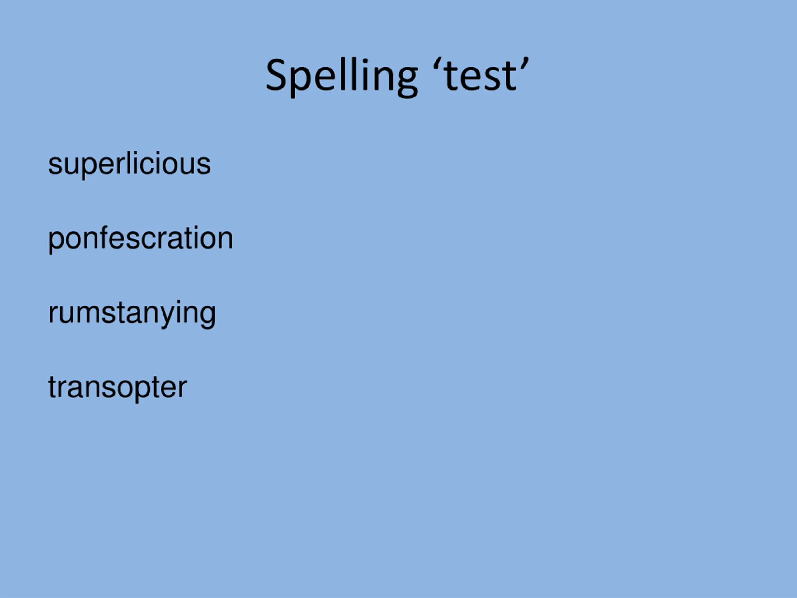 Spelling test superlicious ponfescration rumstanying transopter