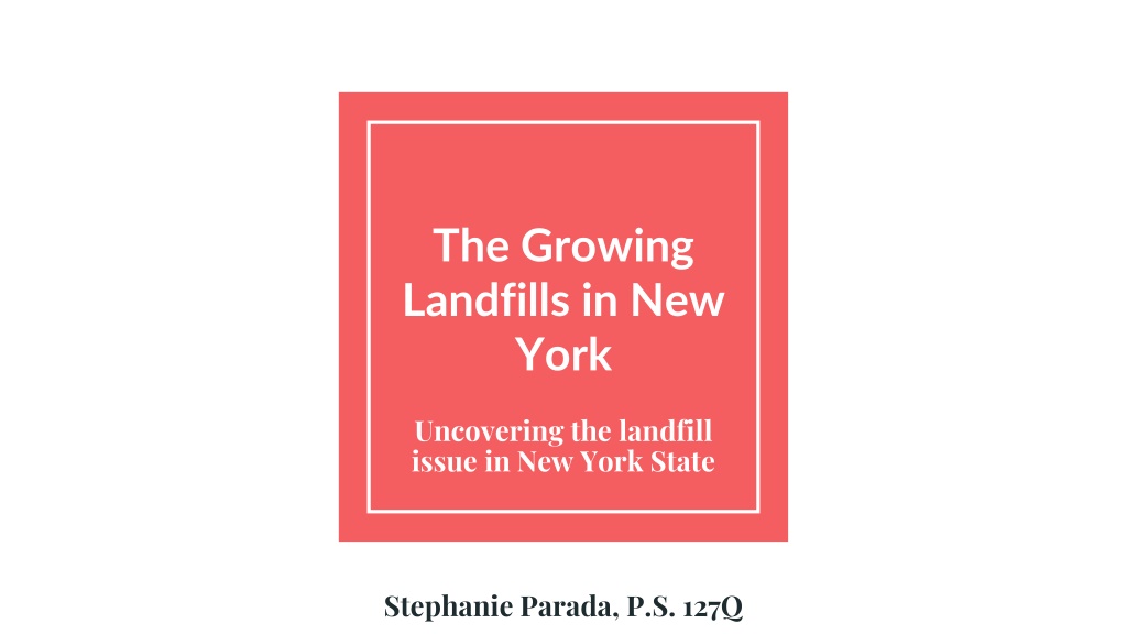 The Growing Landfills in New York Uncovering the landfill issue in New York State Stephanie Parada, P.S. 127Q