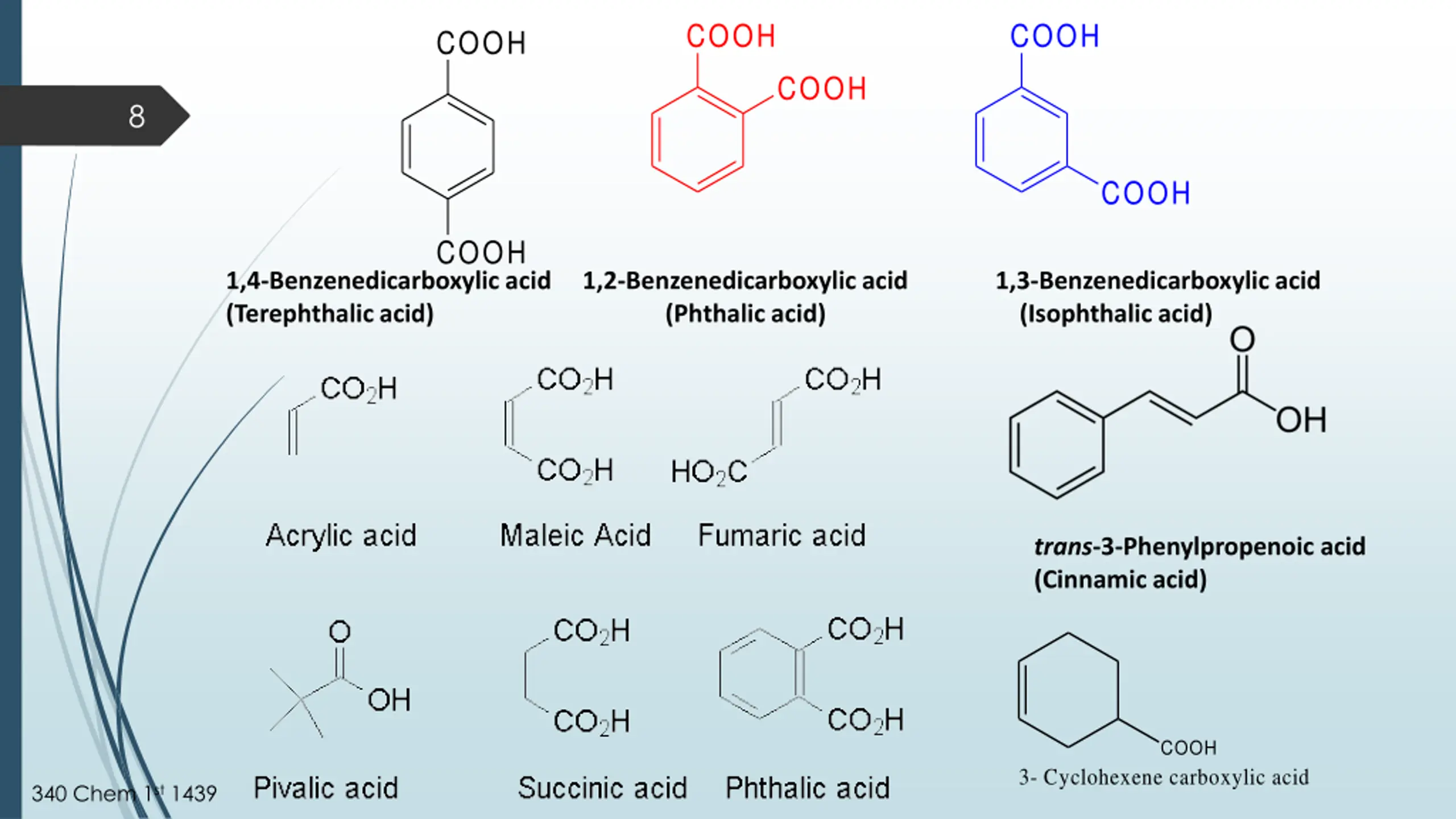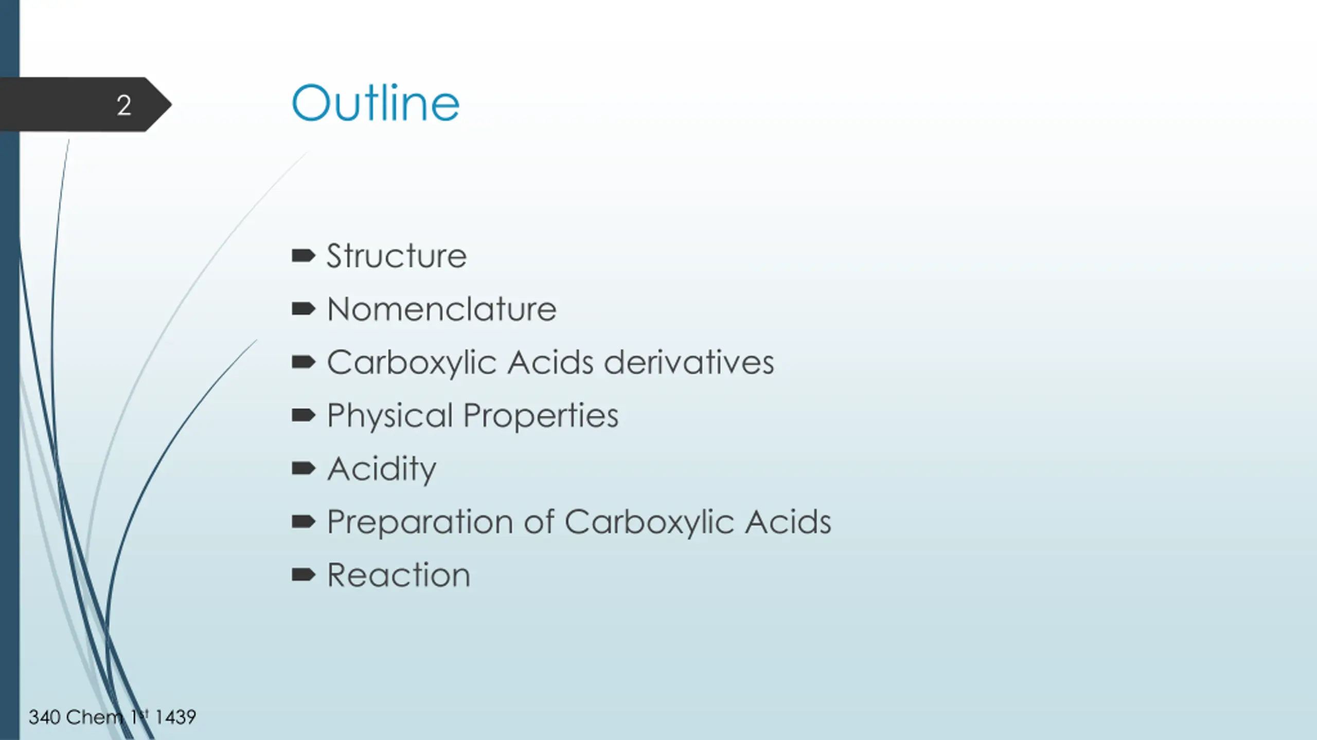 Outline 2 Structure Nomenclature Carboxylic Acids derivatives Physical Properties Acidity Preparation of Carboxylic Acids Reaction 340 Chem 1st 1439