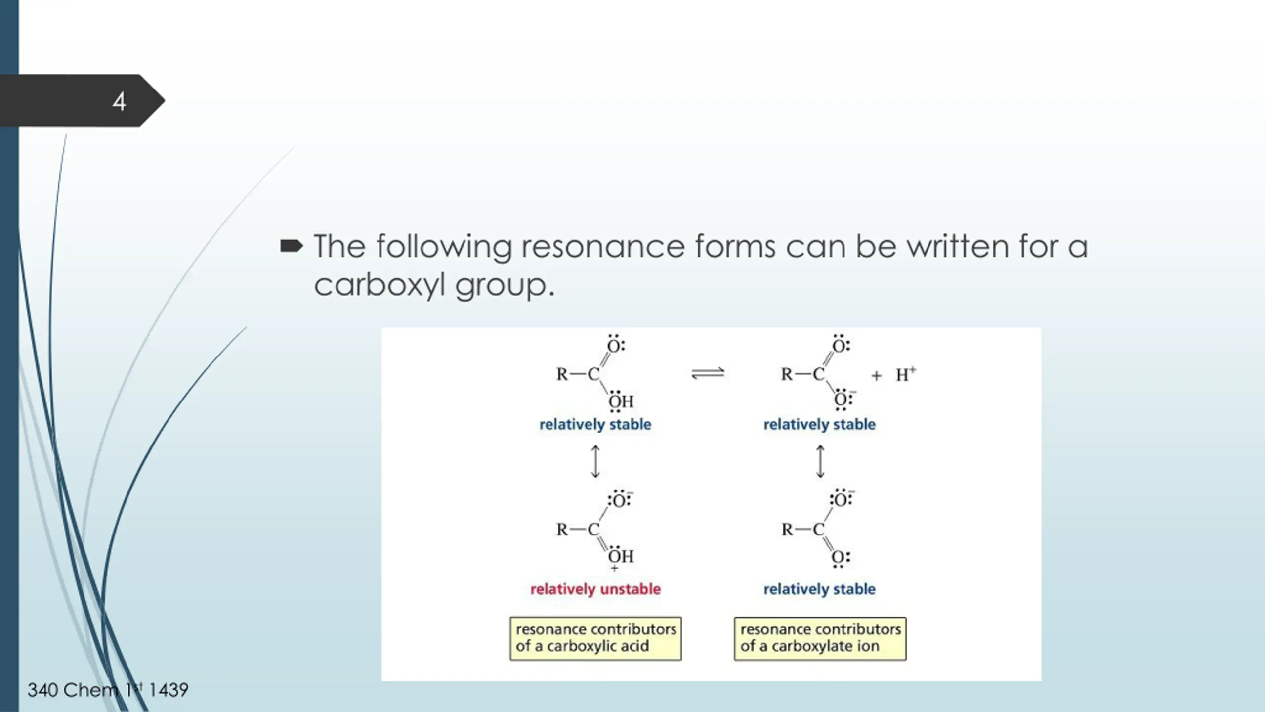 4 The following resonance forms can be written for a carboxyl group. 340 Chem 1st 1439