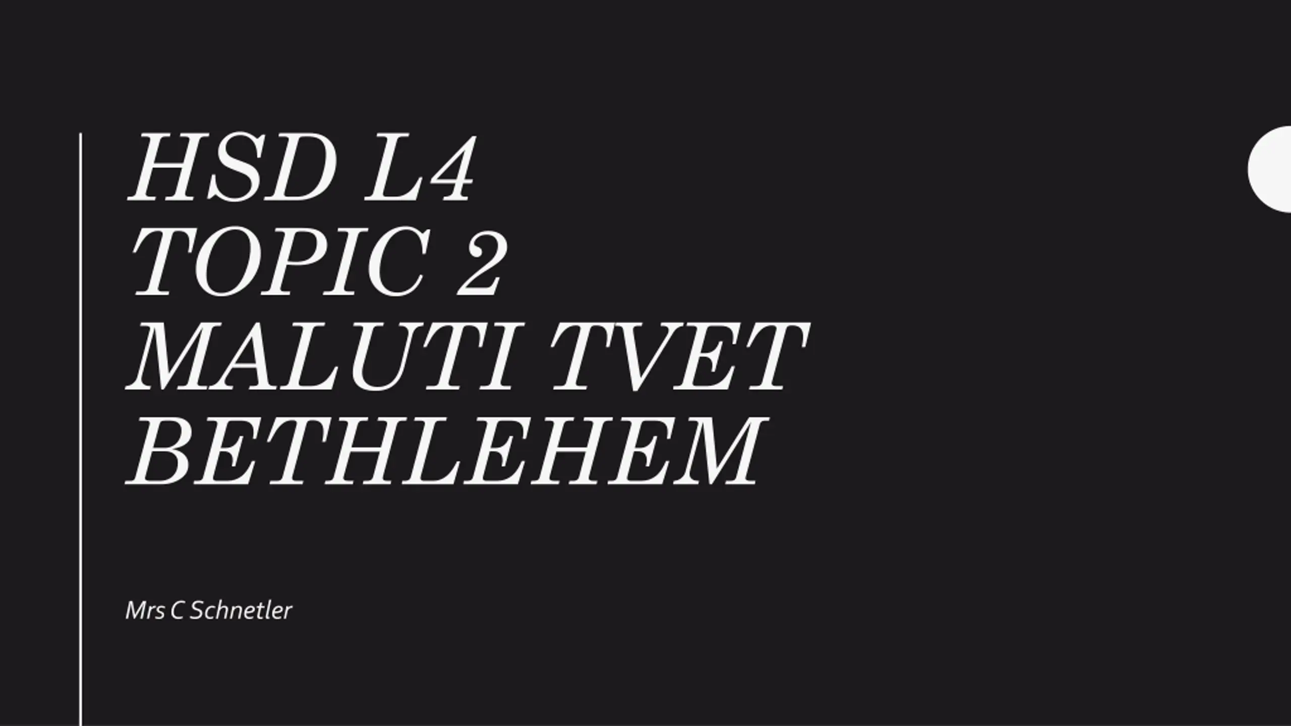 HSD L4 TOPIC 2 MALUTI TVET BETHLEHEM Mrs C Schnetler
