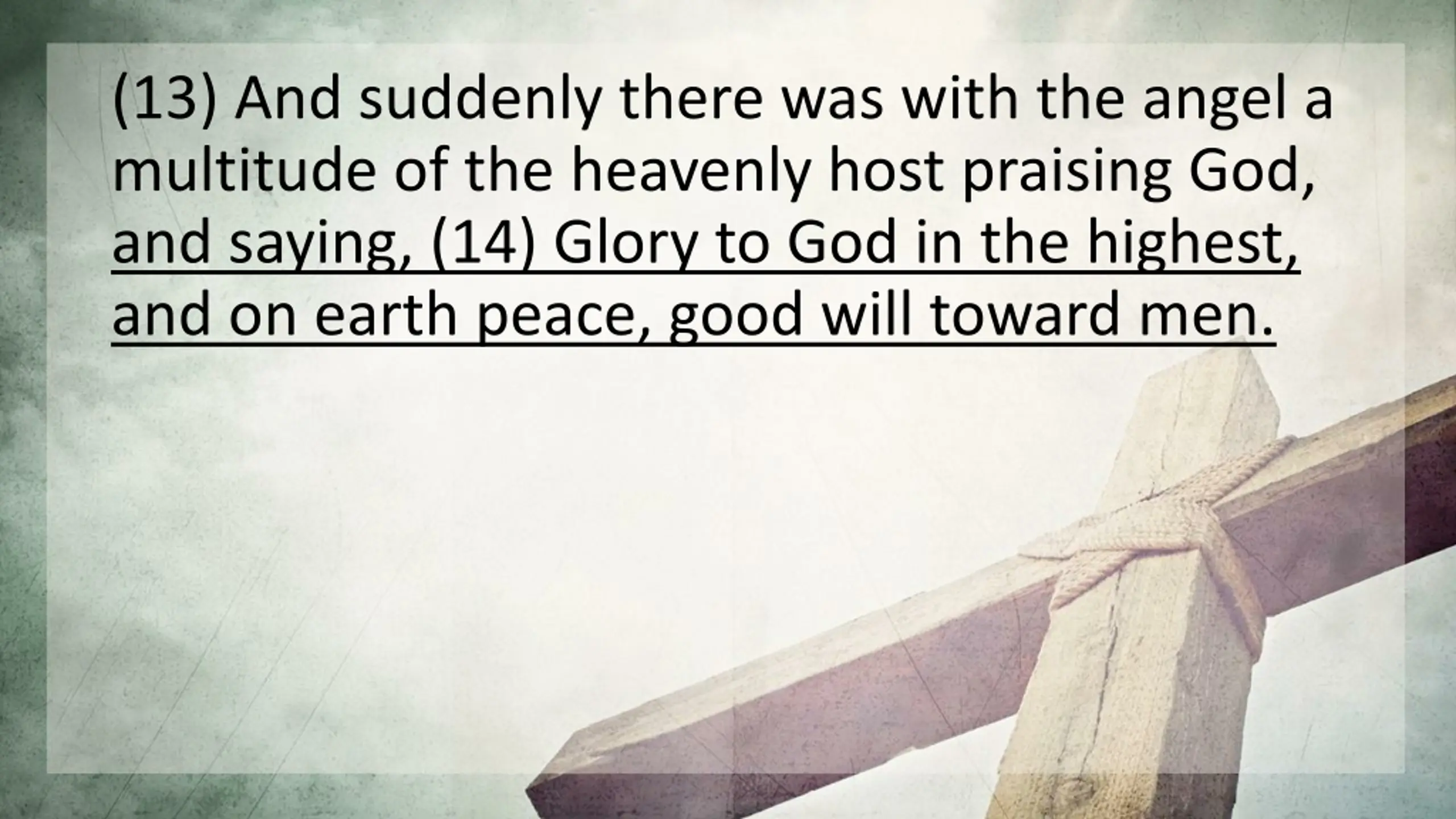 (13) And suddenly there was with the angel a multitude of the heavenly host praising God, and saying, (14) Glory to God in the highest, and on earth peace, good will toward men.