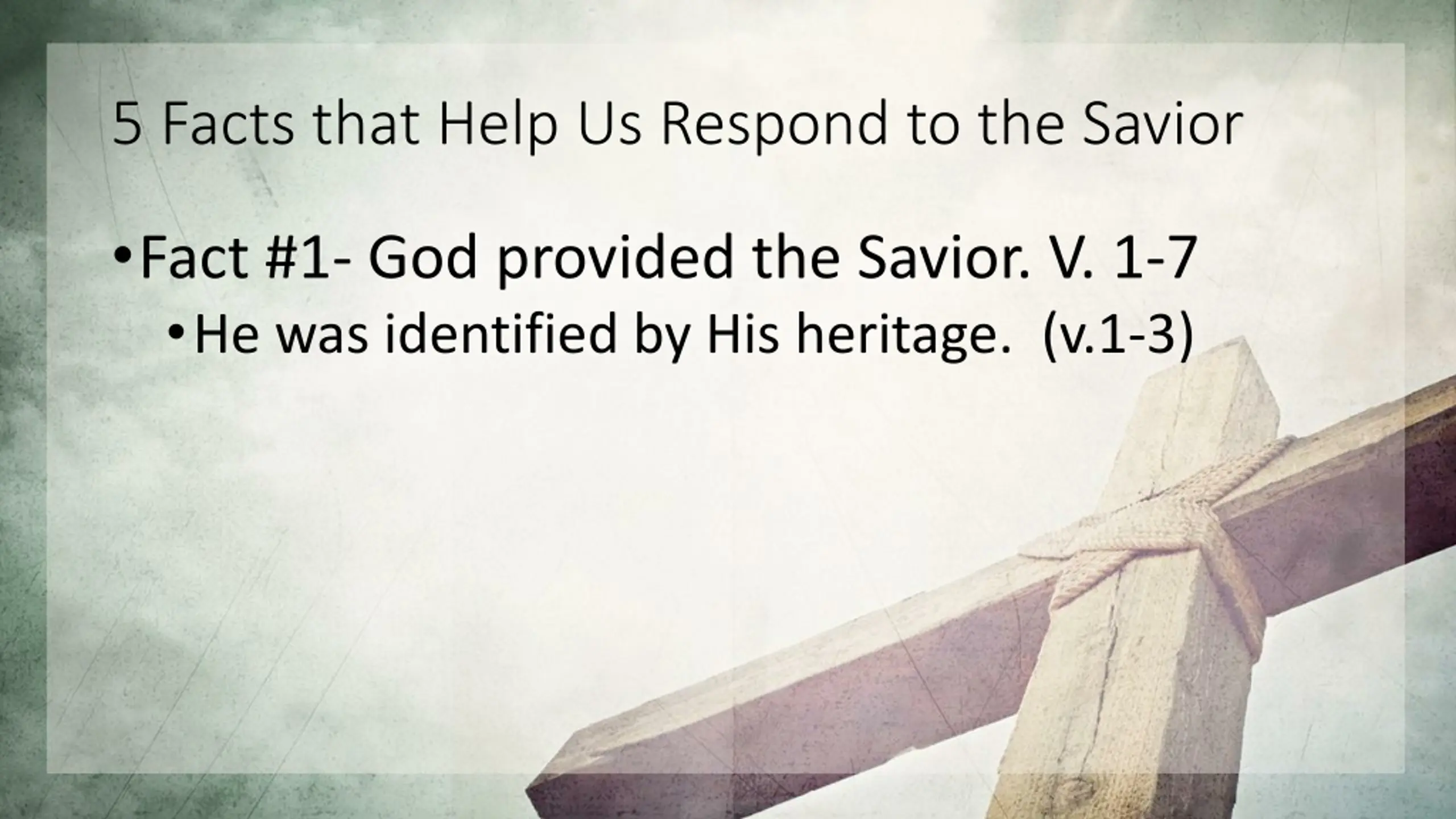 5 Facts that Help Us Respond to the Savior Fact #1- God provided the Savior. V. 1-7 He was identified by His heritage. (v.1-3)
