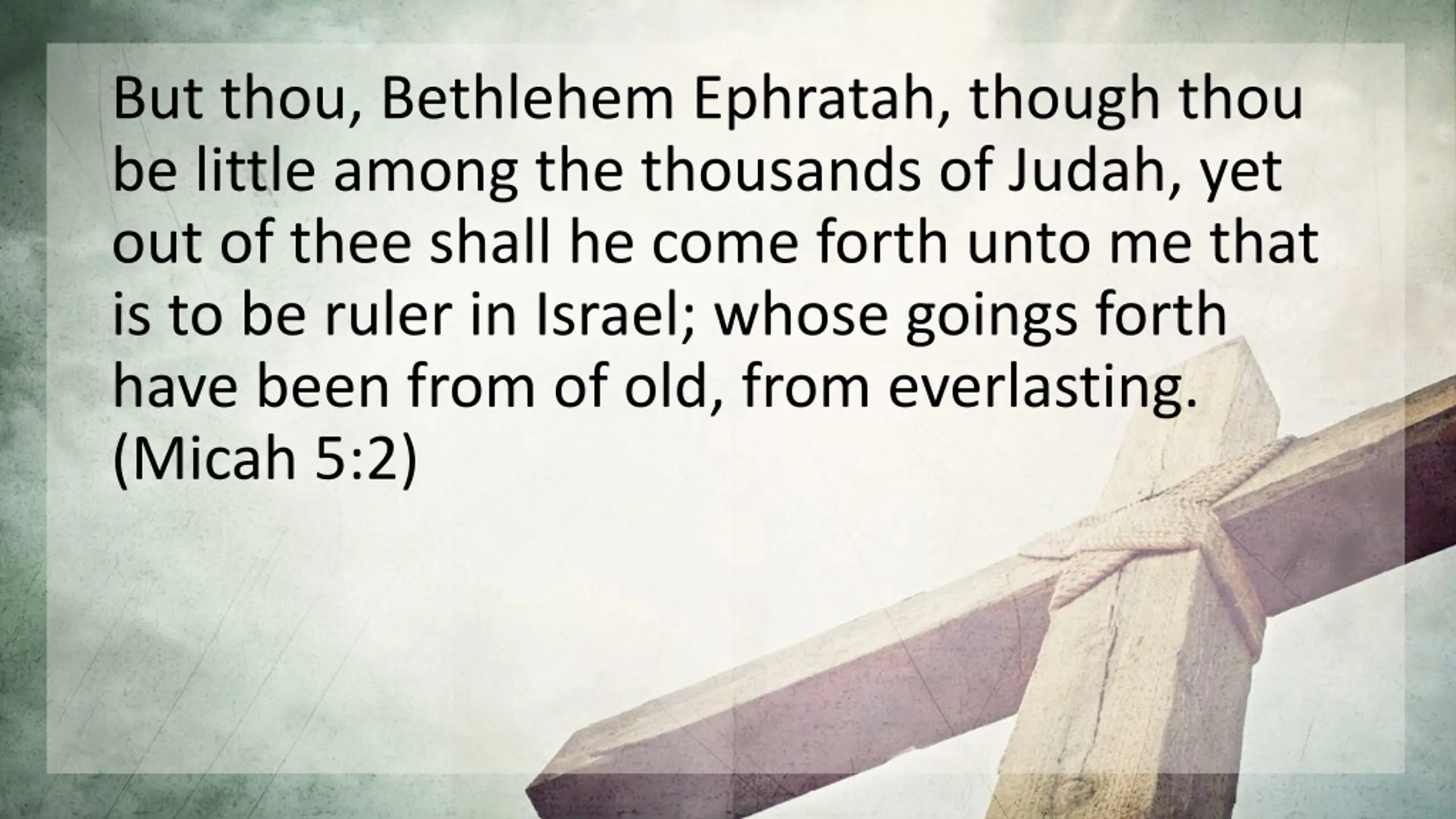But thou, Bethlehem Ephratah, though thou be little among the thousands of Judah, yet out of thee shall he come forth unto me that is to be ruler in Israel; whose goings forth have been from of old, from everlasting. (Micah 5:2)