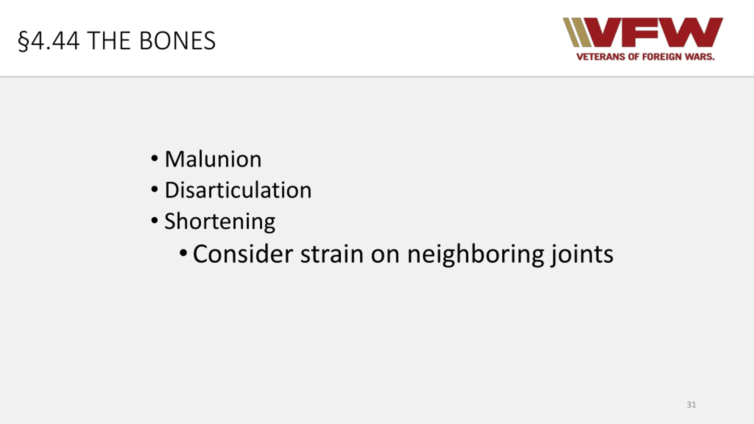 4.44 THE BONES Malunion Disarticulation Shortening Consider strain on neighboring joints 31