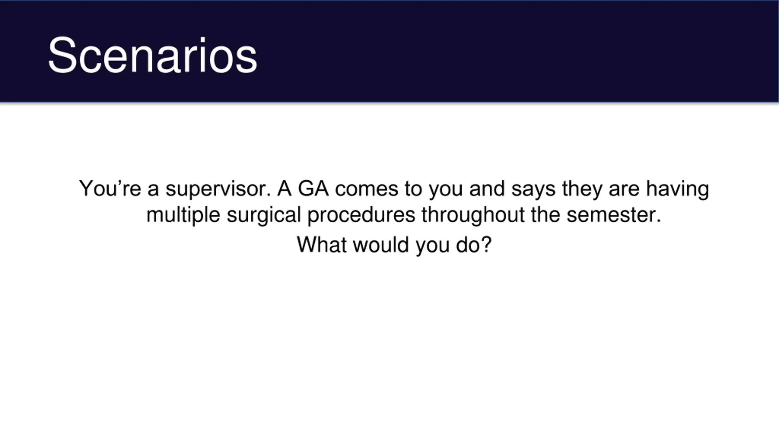 Scenarios You re a supervisor. A GA comes to you and says they are having multiple surgical procedures throughout the semester. What would you do?