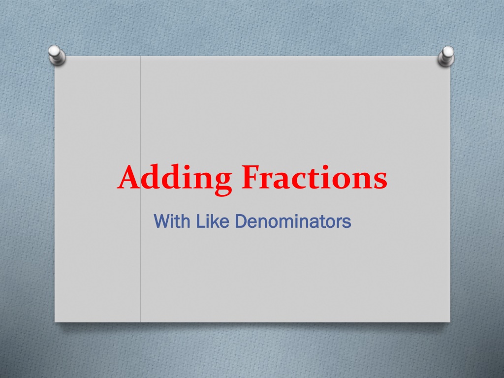 How does that help you? O Like fractions are EASY to add! Like fractions are EASY to add! OJust add the Numerators Just add the Numerators