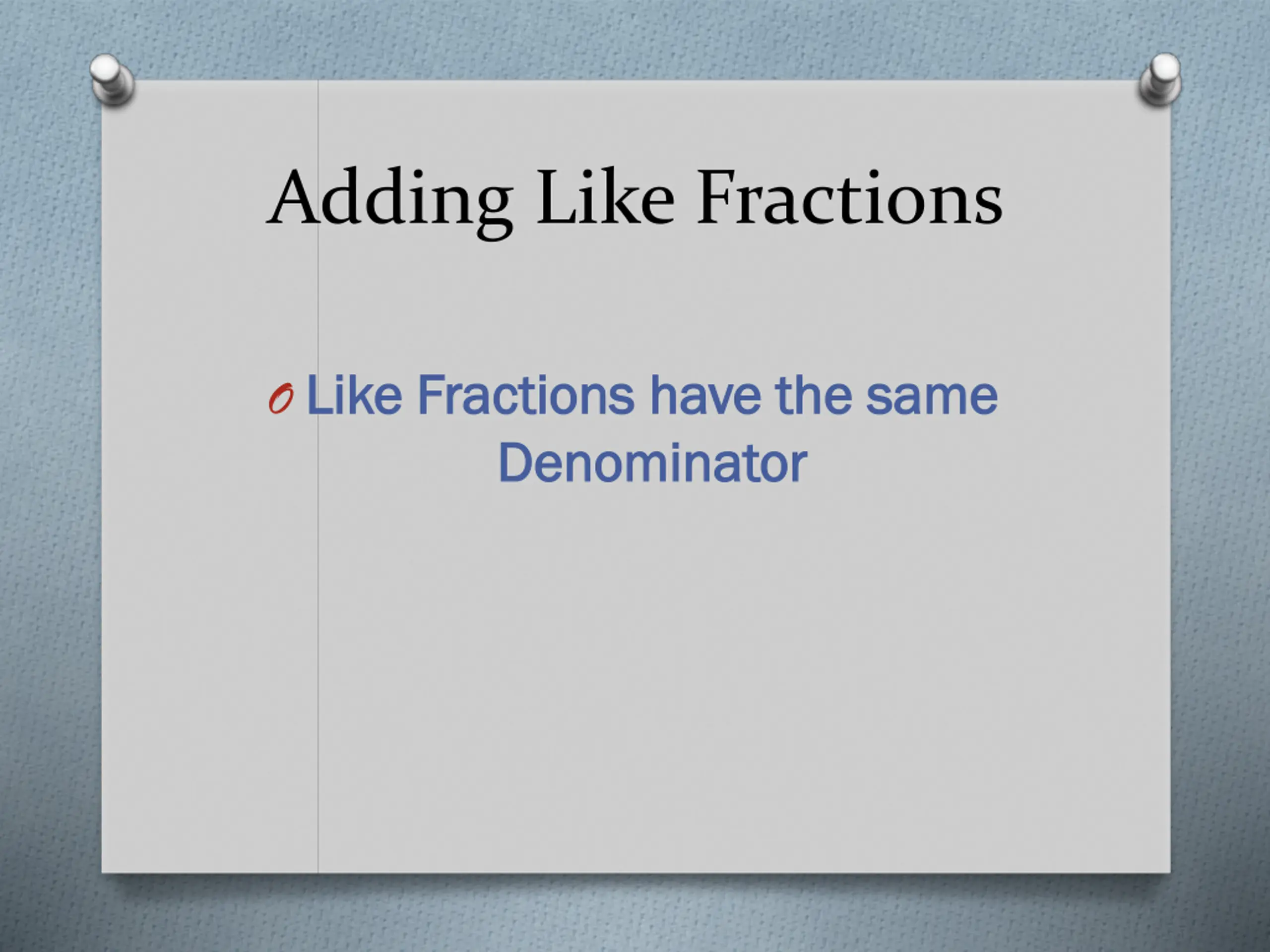 Adding Like Fractions OLike Fractions have the same Like Fractions have the same Denominator Denominator