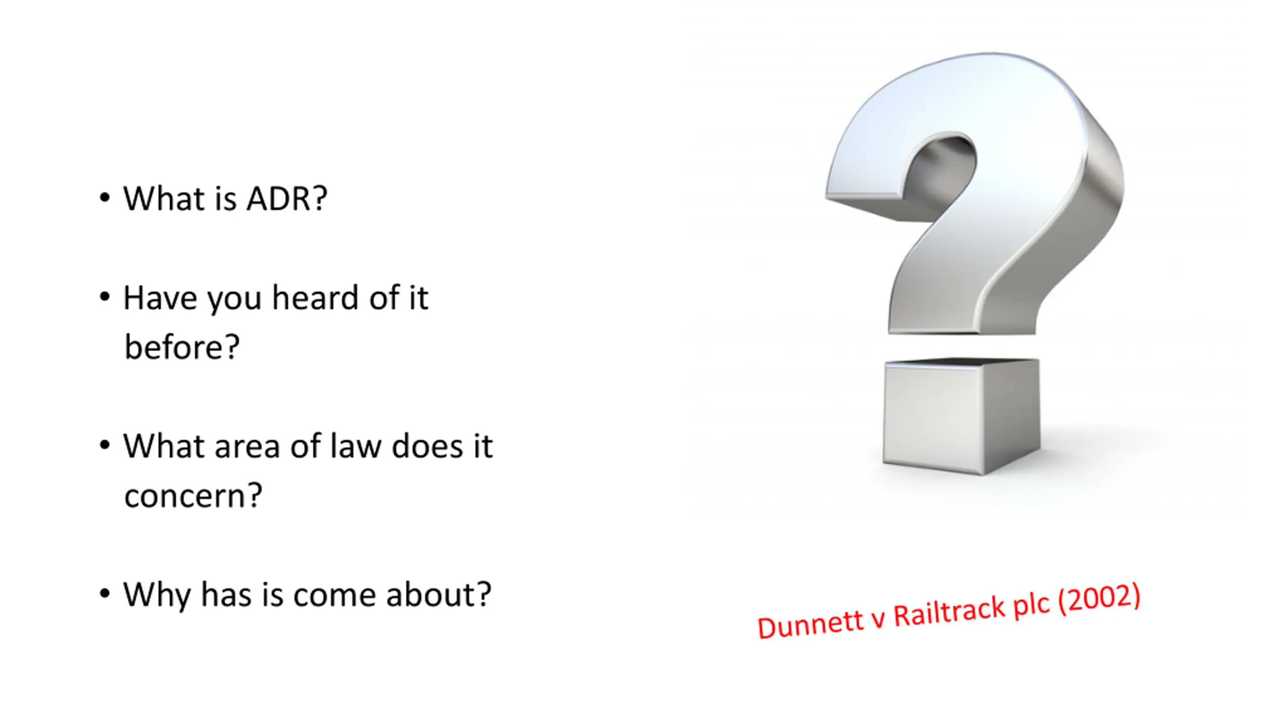 What is ADR? Have you heard of it before? What area of law does it concern? Why has is come about?