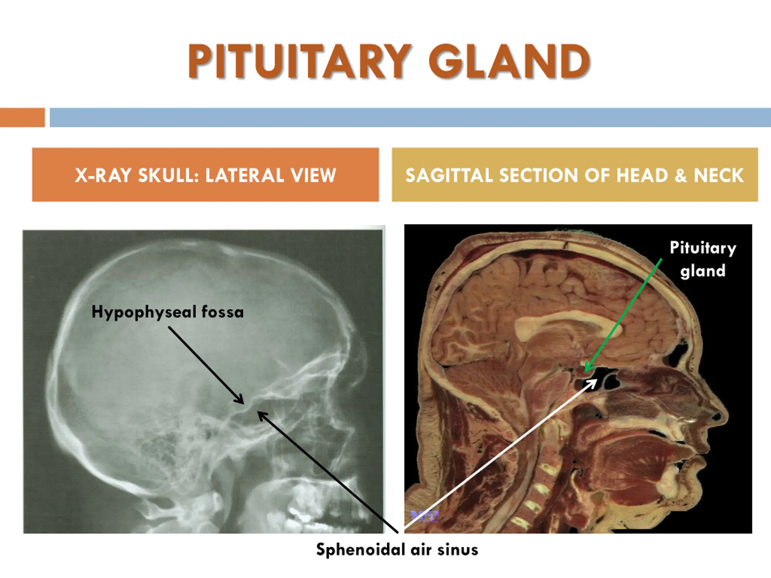 PITUITARY GLAND X-RAY SKULL: LATERAL VIEW SAGITTAL SECTION OF HEAD & NECK Pituitary gland Hypophyseal fossa Sphenoidal air sinus