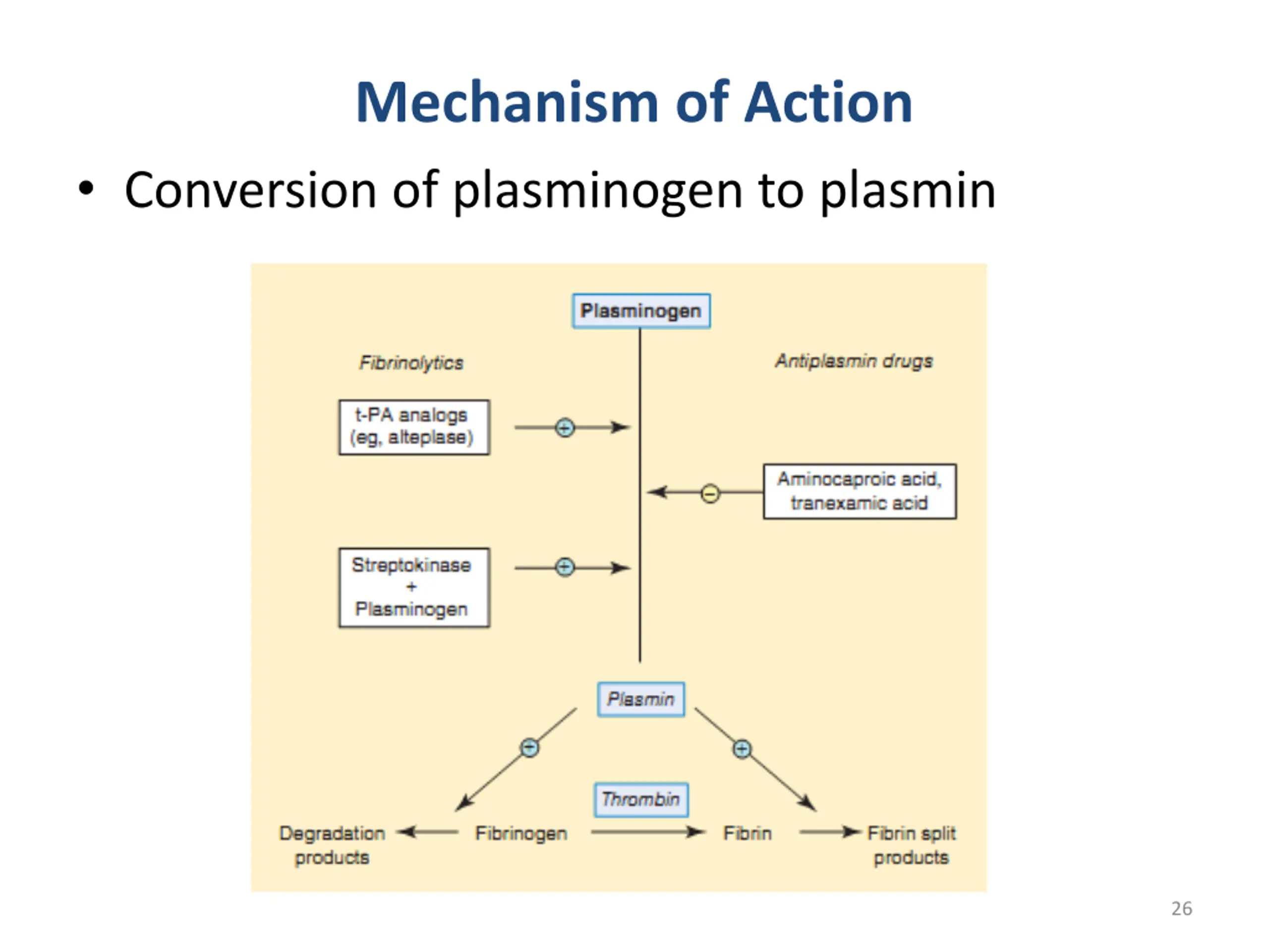 Mechanism of Action Conversion of plasminogen to plasmin 26