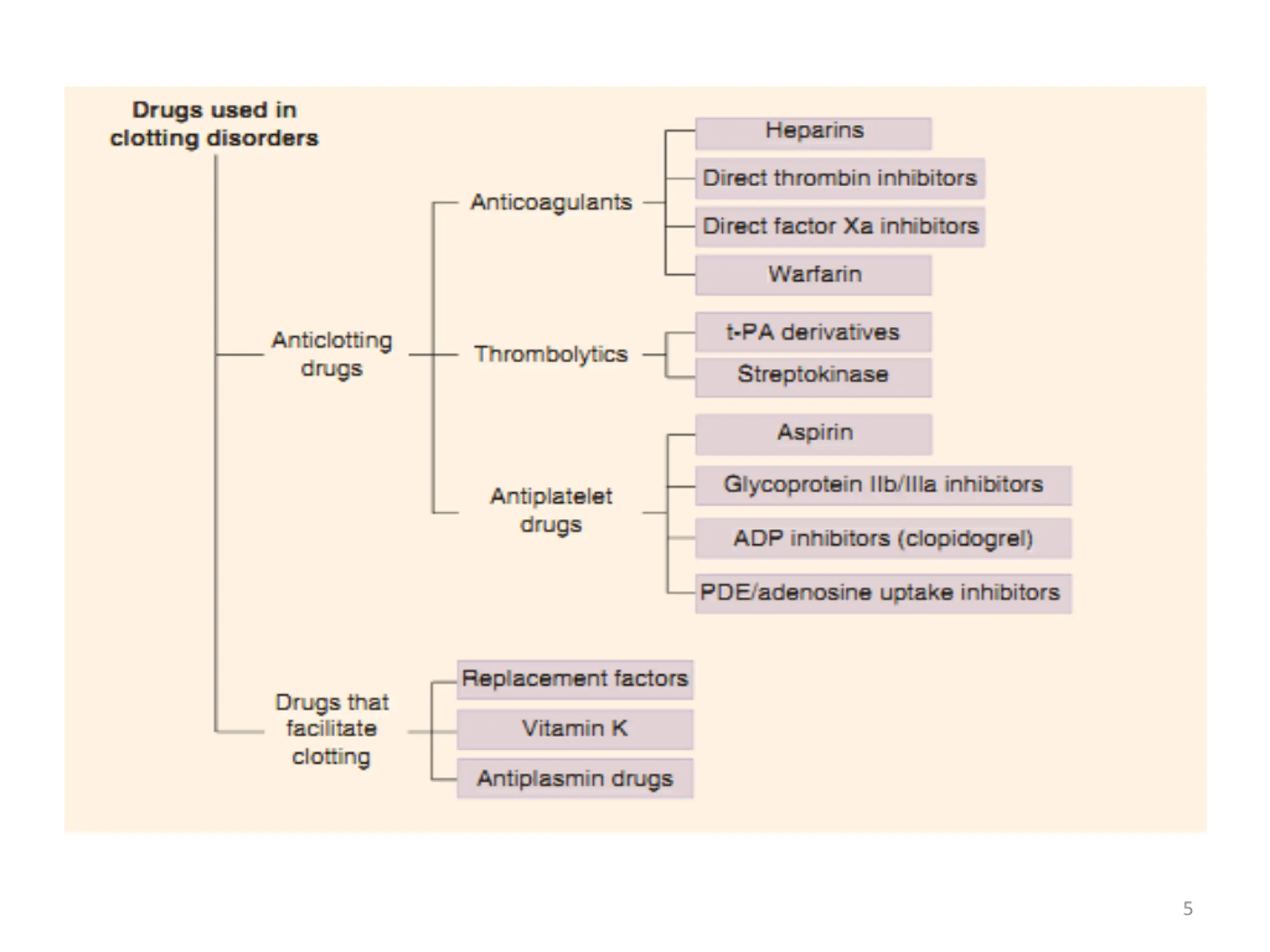 ANTICOAGULANTS Heparin Low-molecular-weight (LMW) heparin Enoxaparin, Dalteparin, Tinzaparin Greater bioavailability (SC) Longer durations of action Administered once or twice a day Fondaparinux A small synthetic drug that contains the biologically active pentasaccharide Administered SC once daily 8