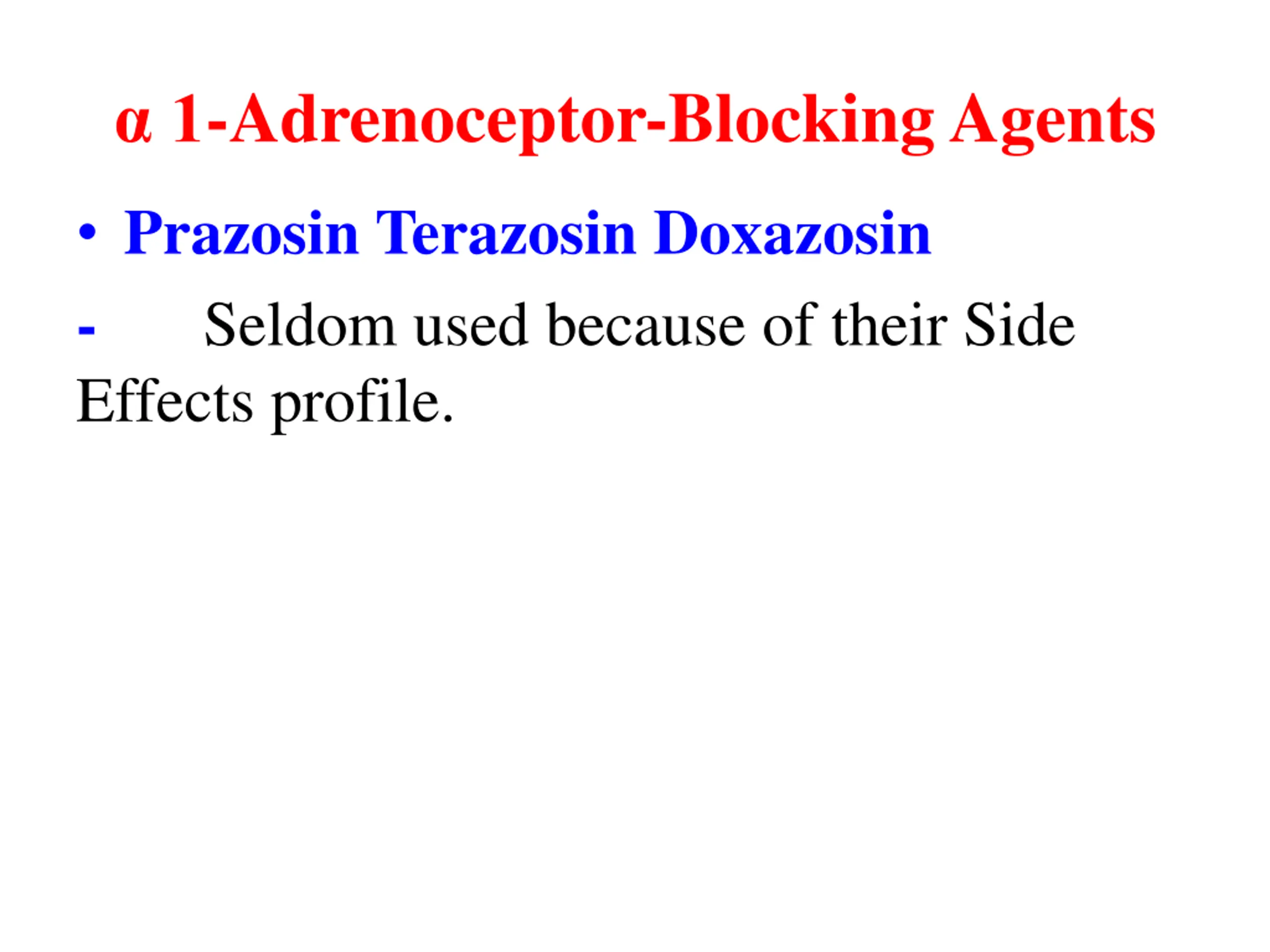 1-Adrenoceptor-Blocking Agents Prazosin Terazosin Doxazosin - Seldom used because of their Side Effects profile.