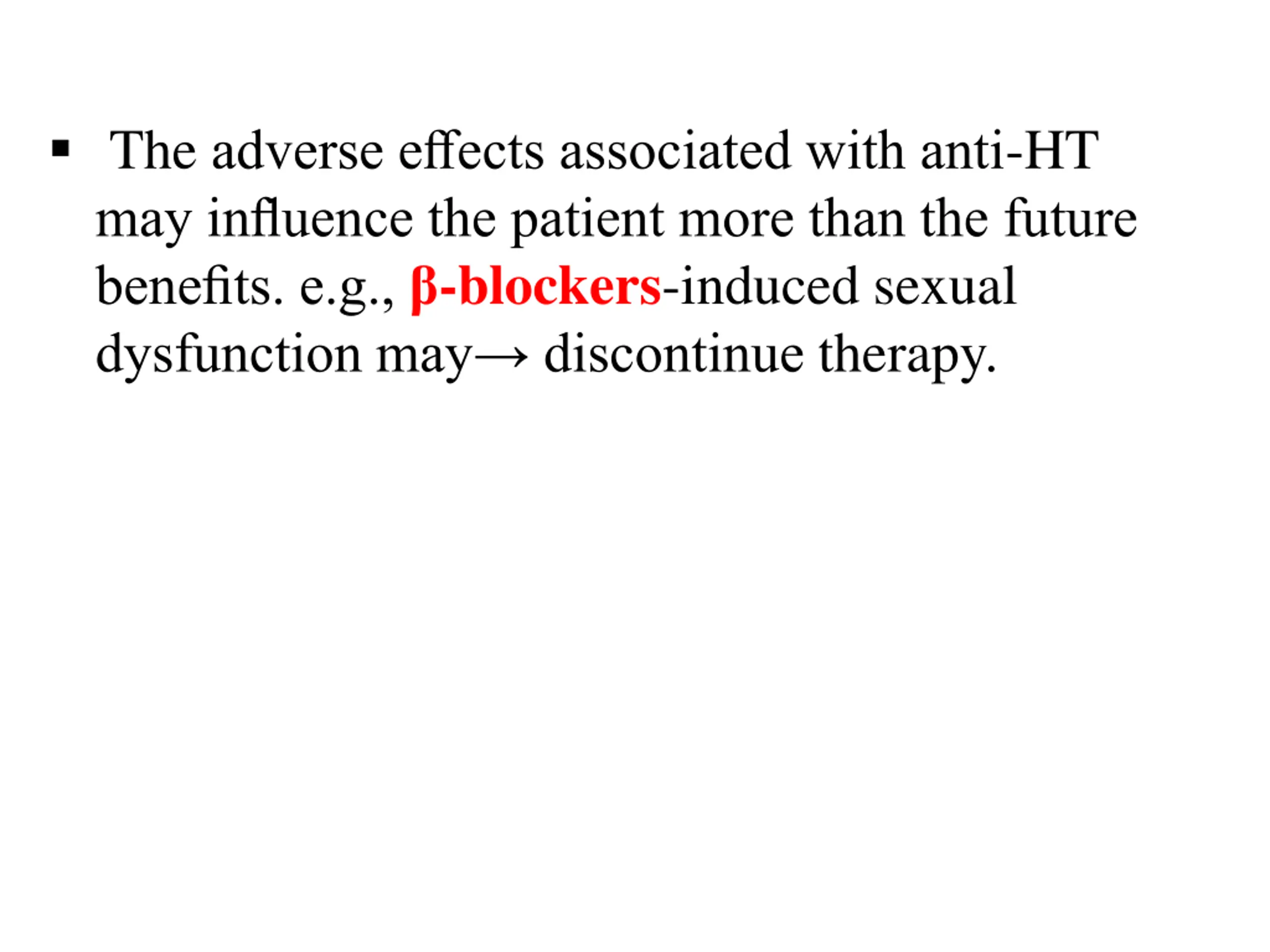 The adverse effects associated with anti-HT may influence the patient more than the future benefits. e.g., -blockers-induced sexual dysfunction may discontinue therapy.