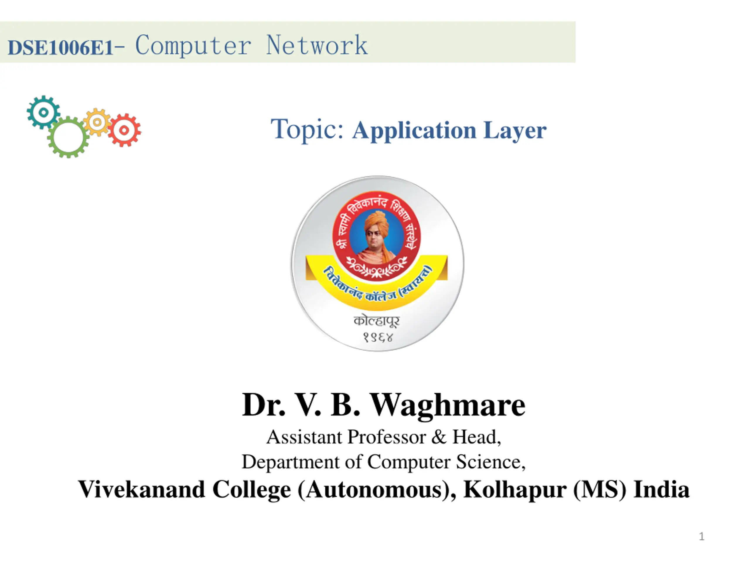 DSE1006E1- - Computer Network Topic: Application Layer Dr. V. B. Waghmare Assistant Professor & Head, Department of Computer Science, Vivekanand College (Autonomous), Kolhapur (MS) India 1