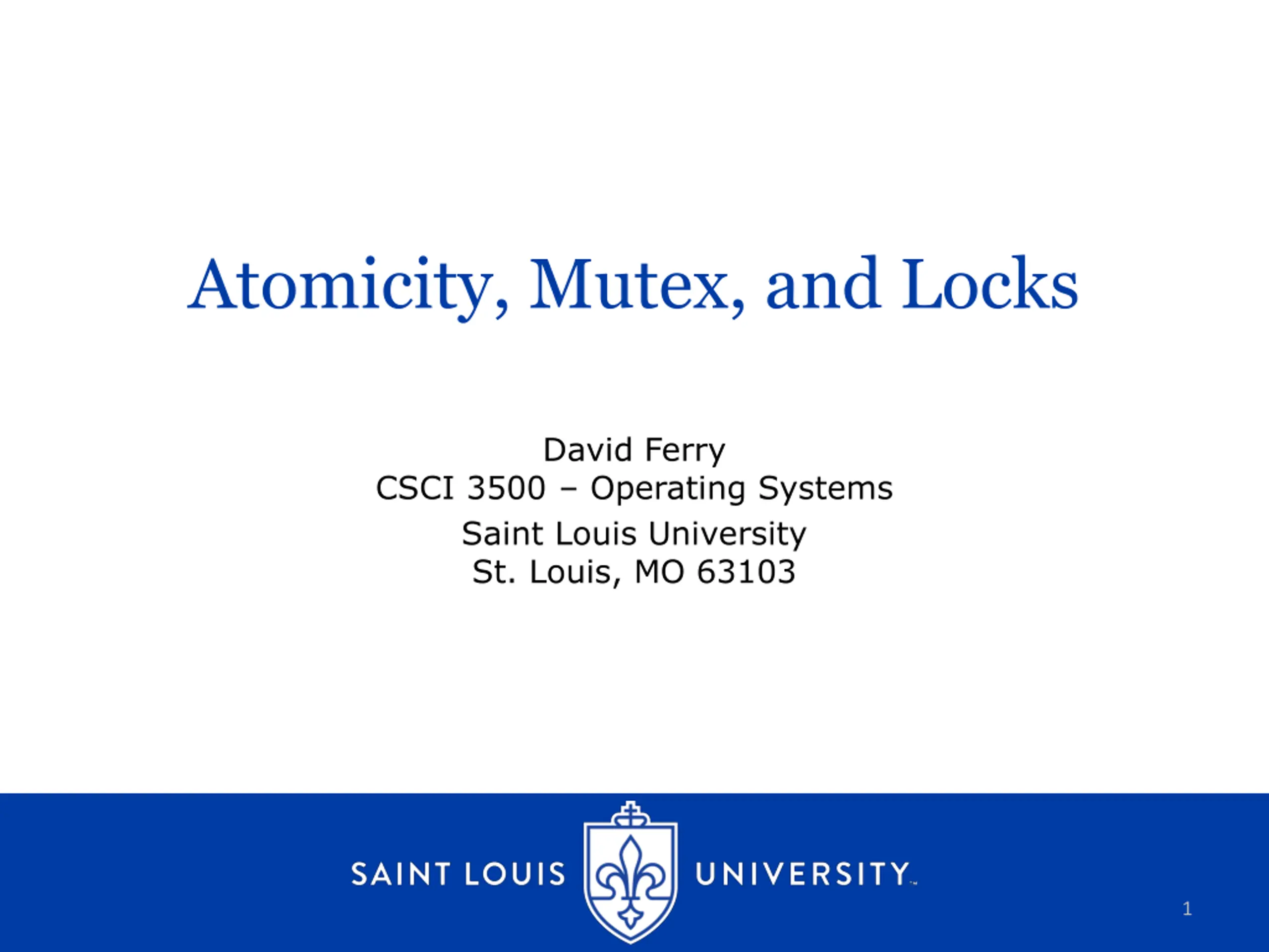 Atomicity, Mutex, and Locks David Ferry CSCI 3500 Operating Systems Saint Louis University St. Louis, MO 63103 1