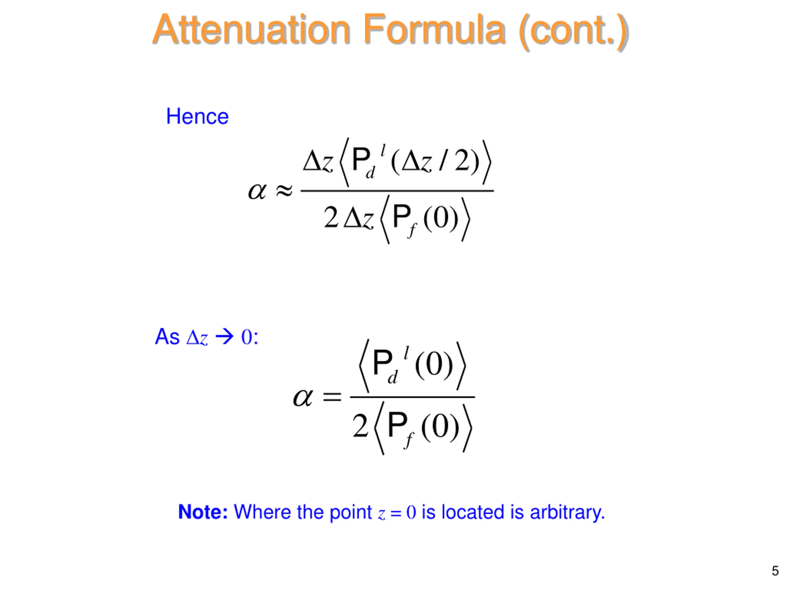 Attenuation Formula (cont.) Hence l P ( / 2) z z d P 2 (0) z f As z 0: l P (0) d P = 2 (0) f Note: Where the point z = 0 is located is arbitrary. 5