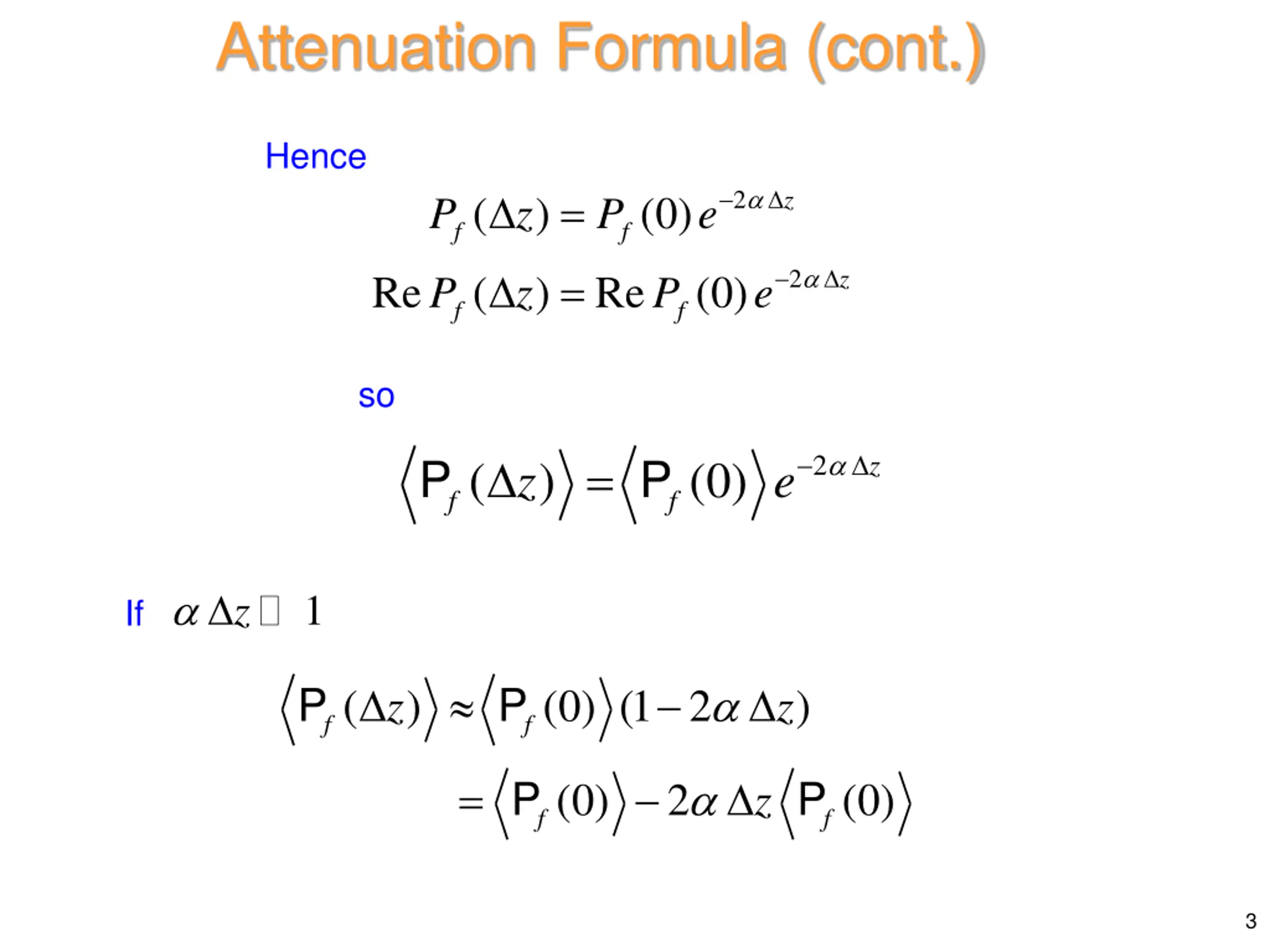 Attenuation Formula (cont.) Hence = 2 z ( ) (0) P z P e f f = 2 z Re ( ) Re (0) P z P e f f so = 2 z P P ( ) (0) z e f f 1 z If P P ( ) (0) (1 2 ) z z f f = P P (0) 2 (0) z f f 3