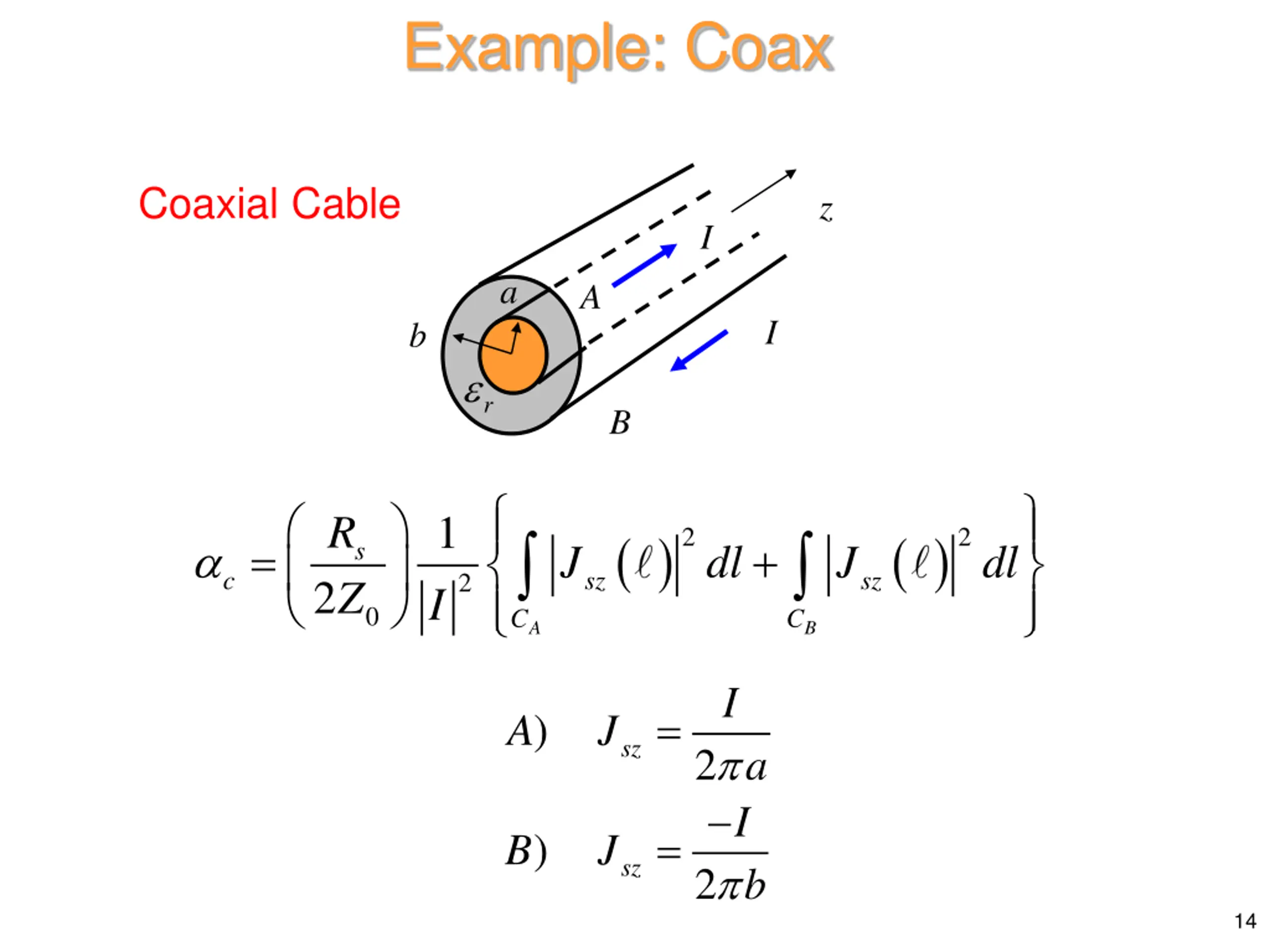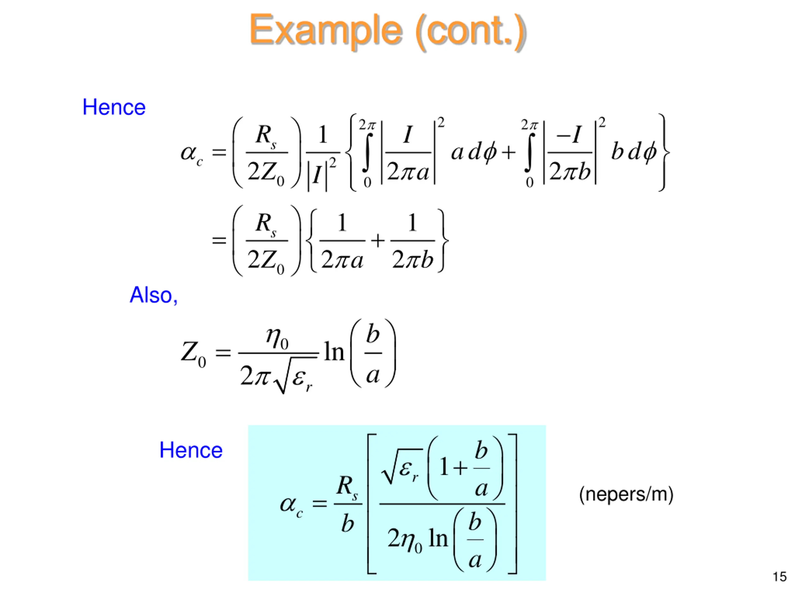 Example: Coax Coaxial Cable z I a A I b r B 1 I R Z ( ) ( ) 2 2 = + s J dl J dl c sz sz 2 2 0 C C A B I = ) A J sz 2 a I = ) B J sz 2 b 14