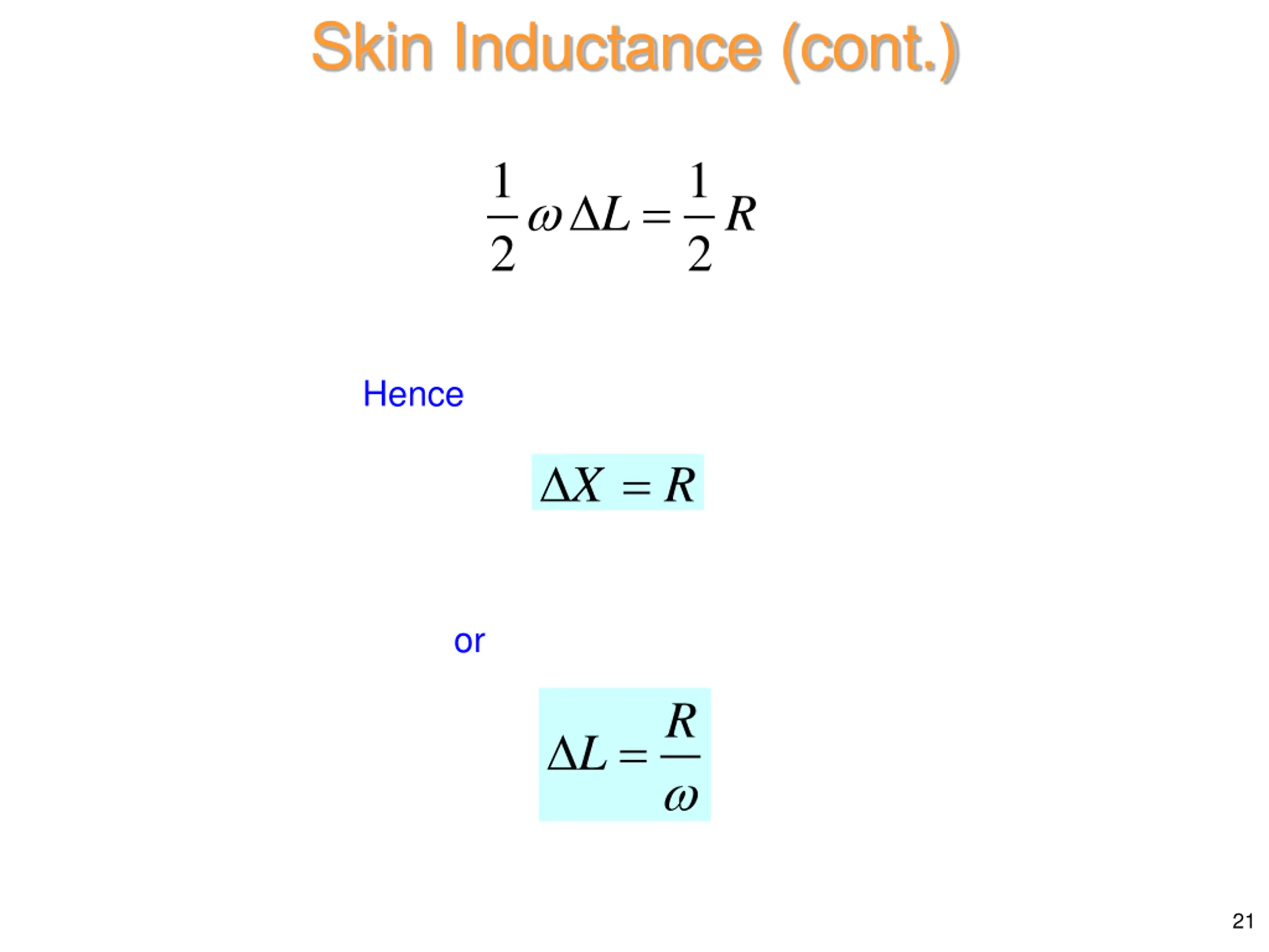 Skin Inductance (cont.) Hence: 1 2 1 2 1 I ( ) 2 = L X J dl s sz 2 + C C A B 1 2 1 I ( ) 2 = R J dl s sz 2 + C C A B 1 2 = R 20