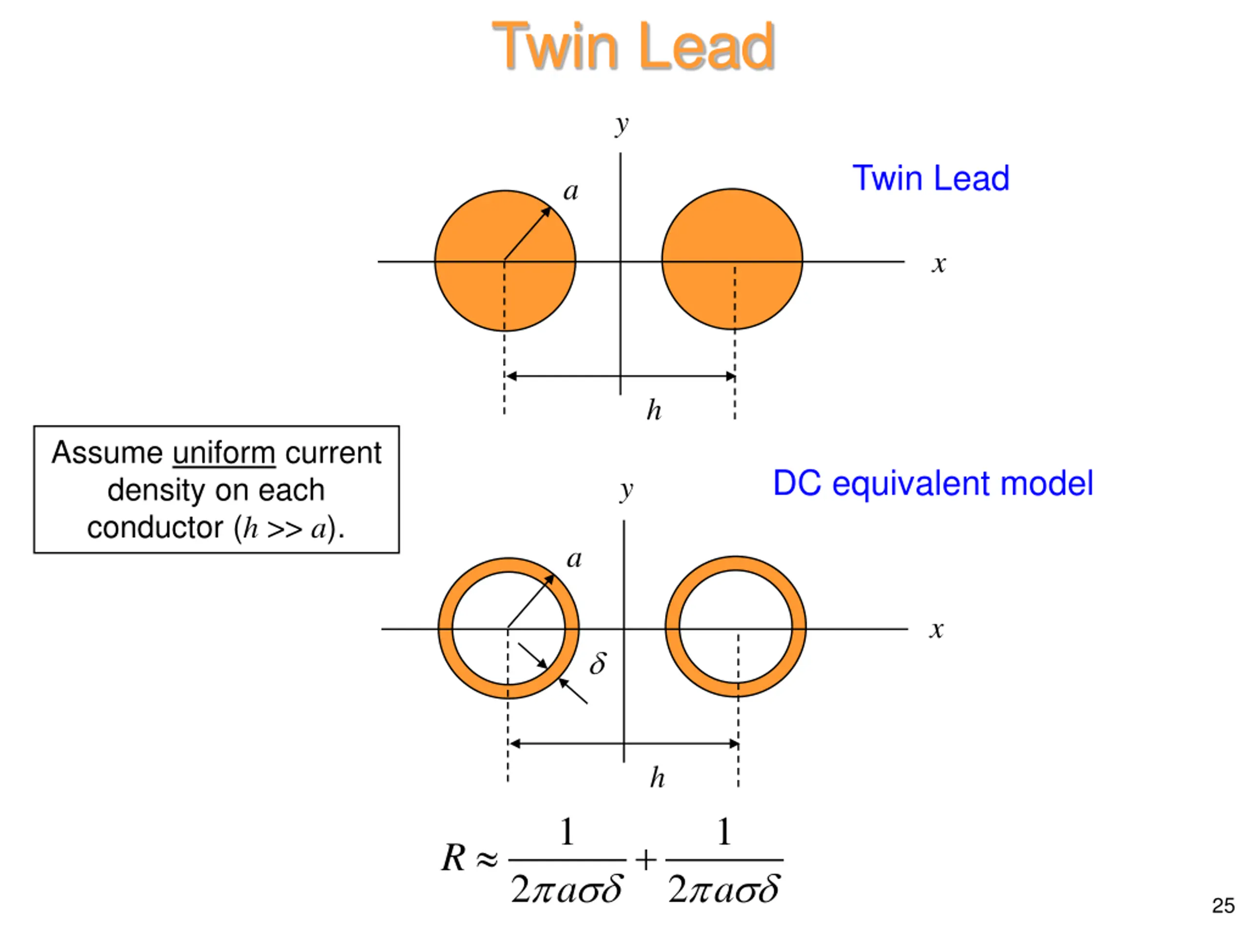 Twin Lead y Twin Lead a x h Assume uniform current density on each conductor (h>>a). DC equivalent model y a x h 1 a 1 a + R 2 2 25