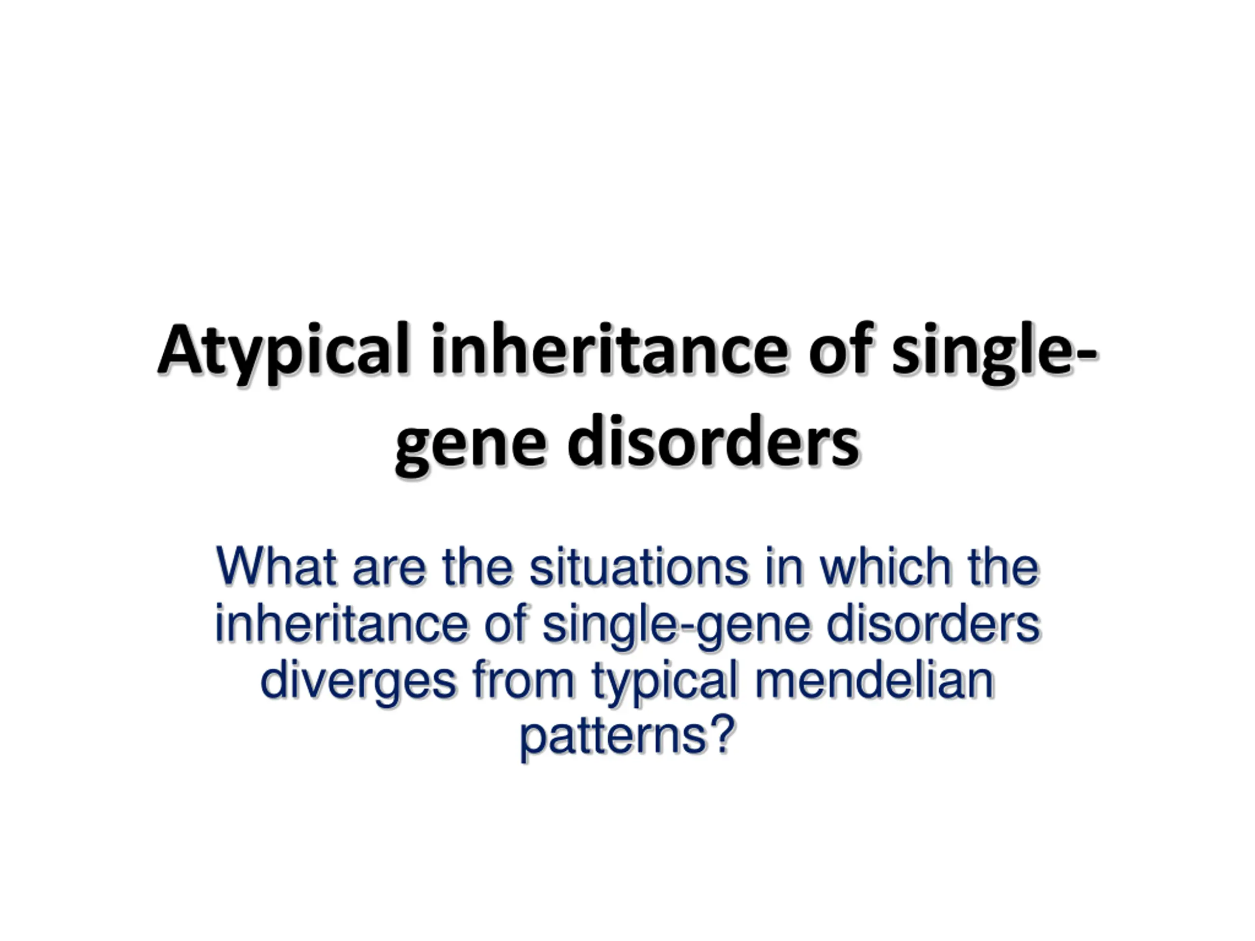 Atypical inheritance of single- gene disorders What are the situations in which the inheritance of single-gene disorders diverges from typical mendelian patterns?