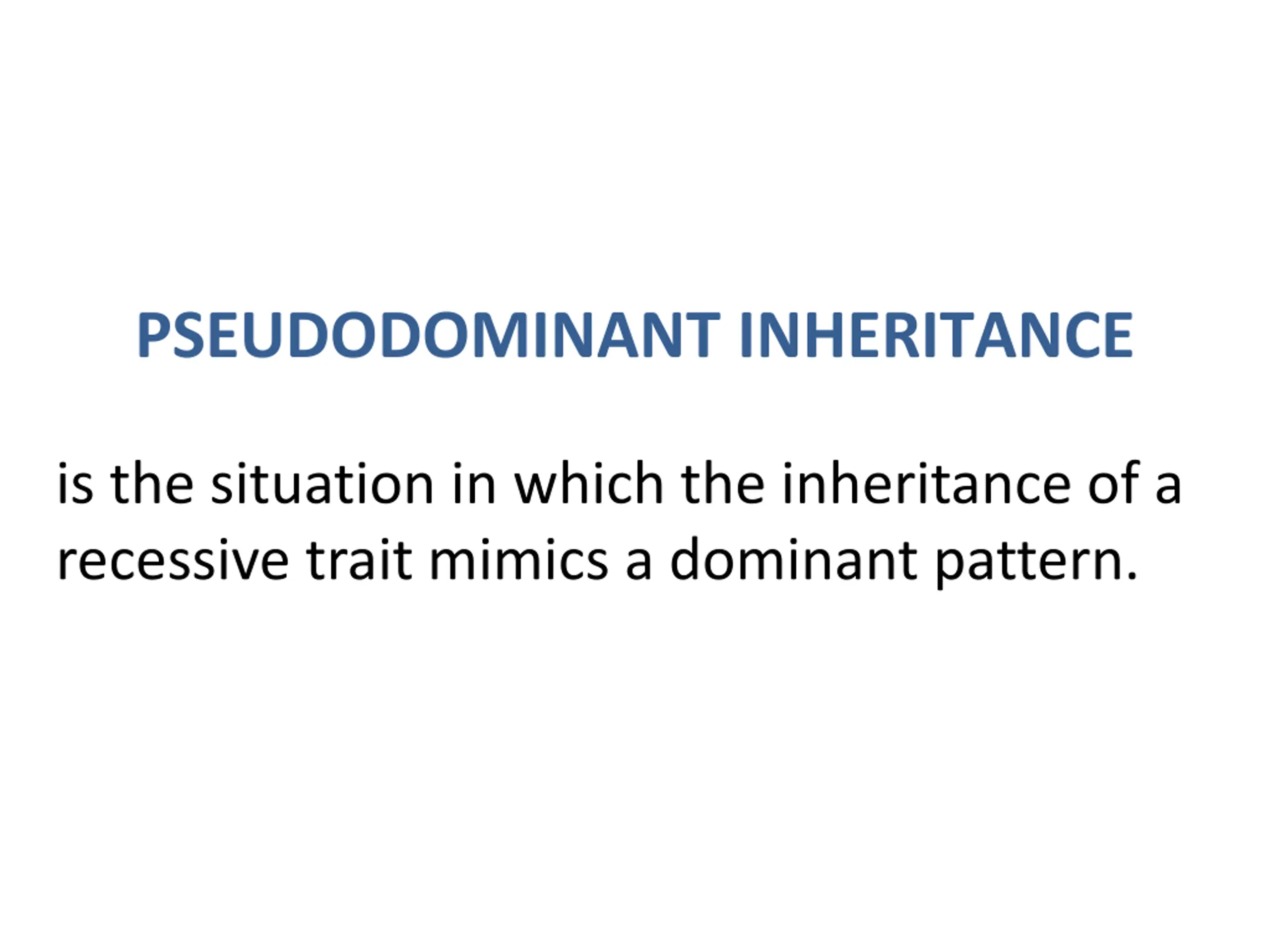 PSEUDODOMINANT INHERITANCE is the situation in which the inheritance of a recessive trait mimics a dominant pattern.