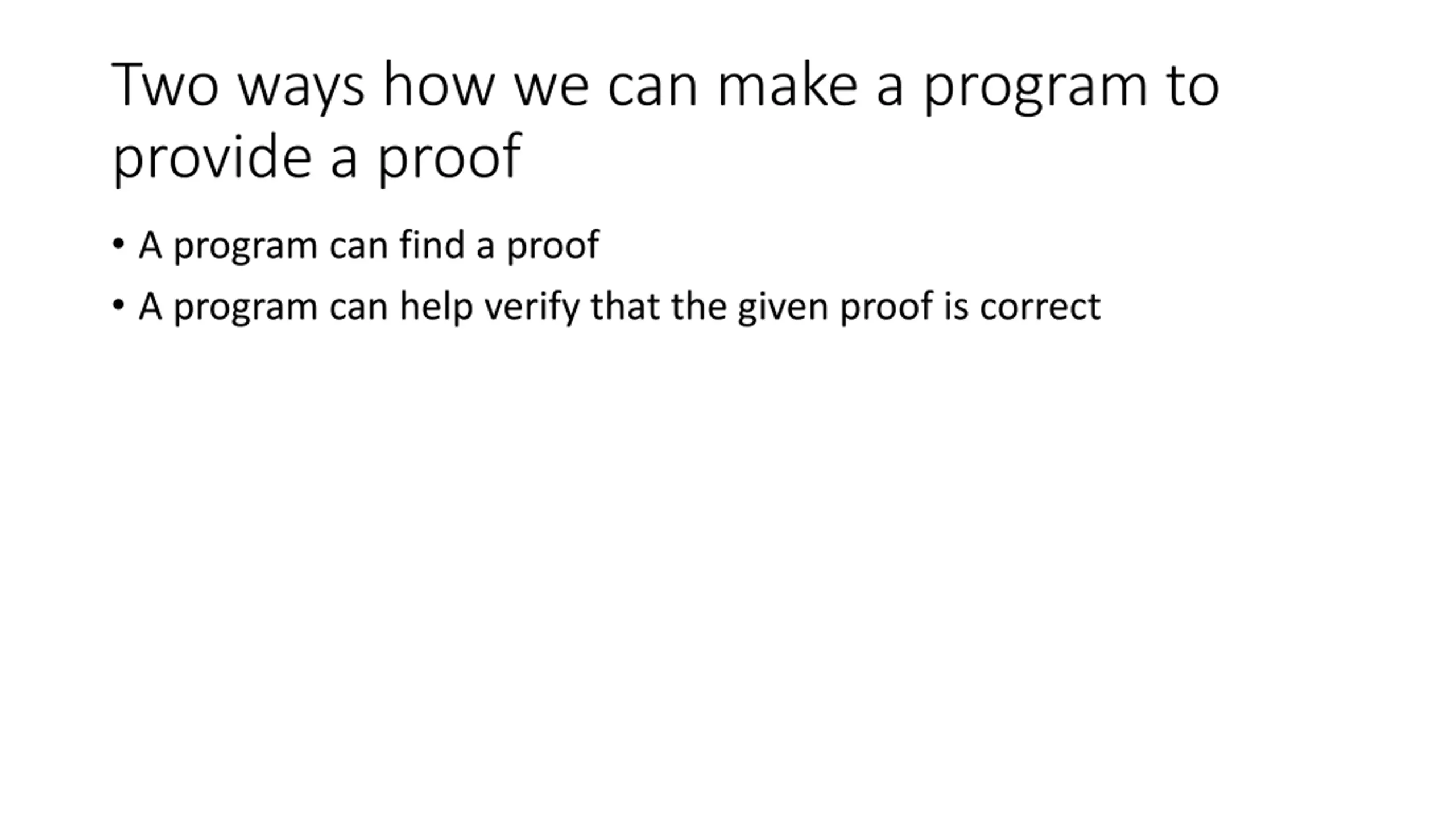 Two ways how we can make a program to provide a proof A program can find a proof A program can help verify that the given proof is correct