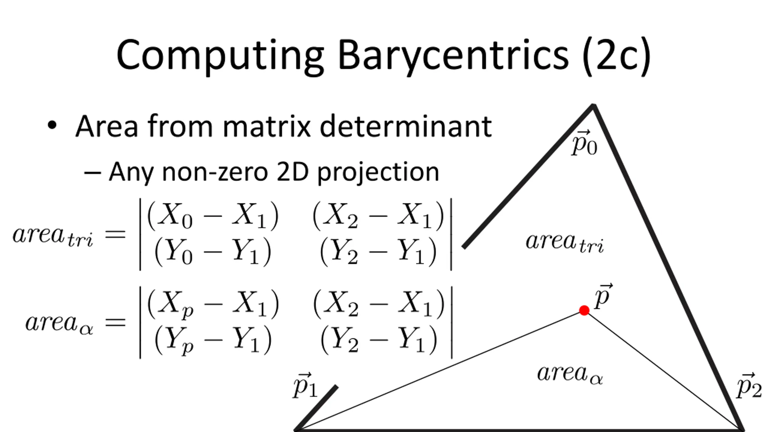 Computing Barycentrics (2c) Area from matrix determinant Any non-zero 2D projection