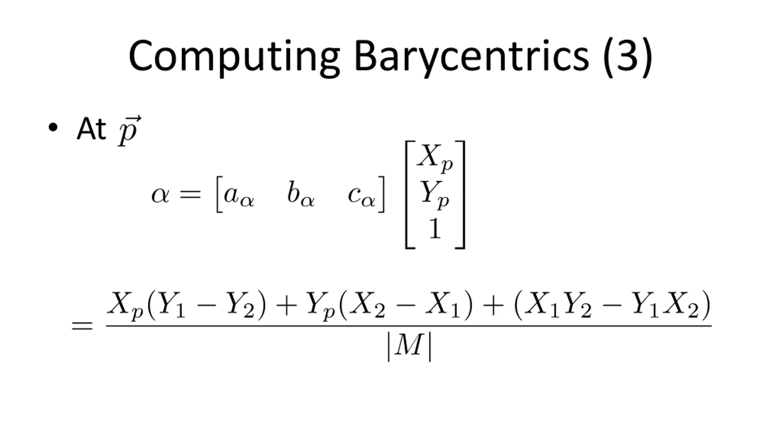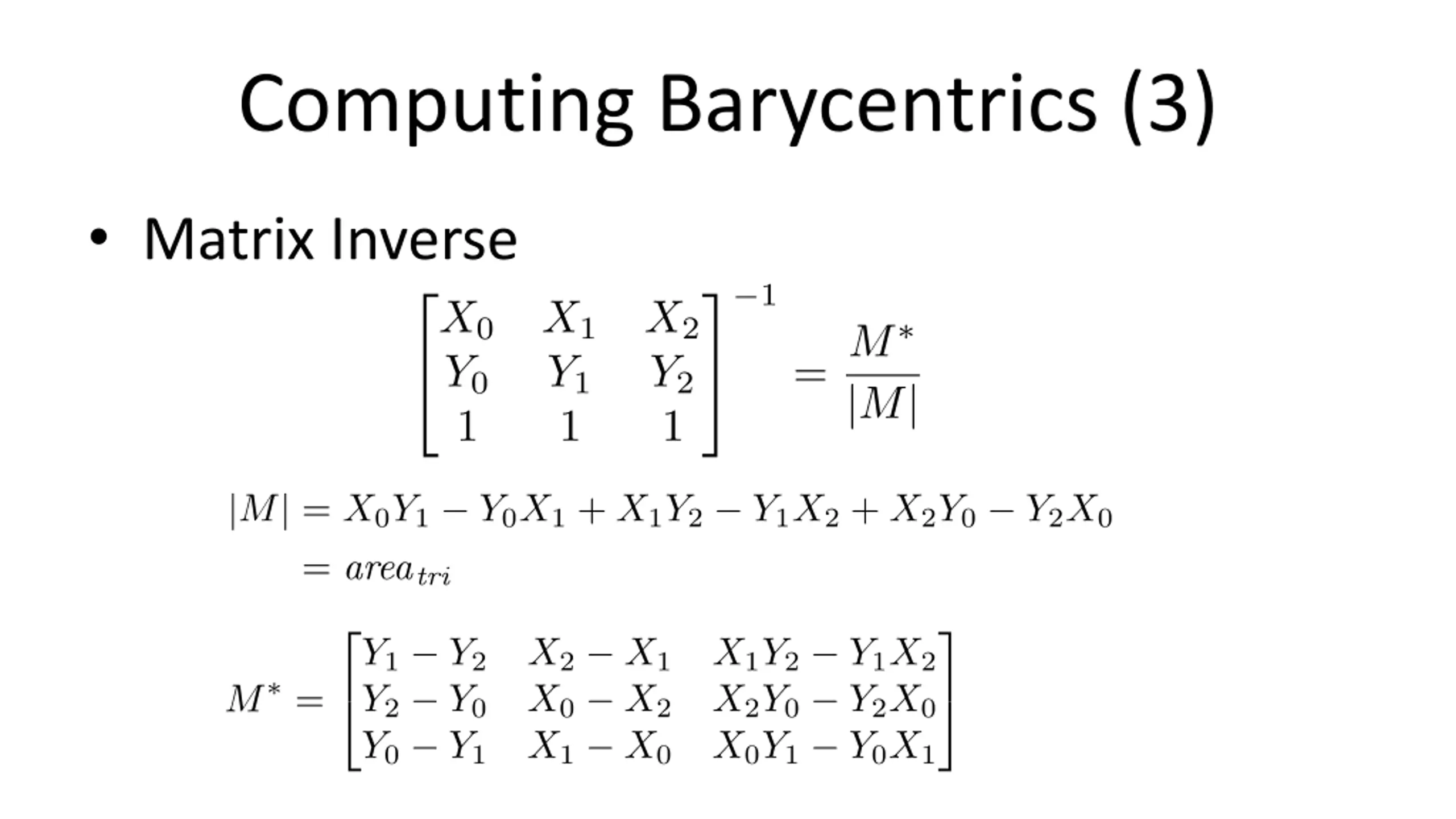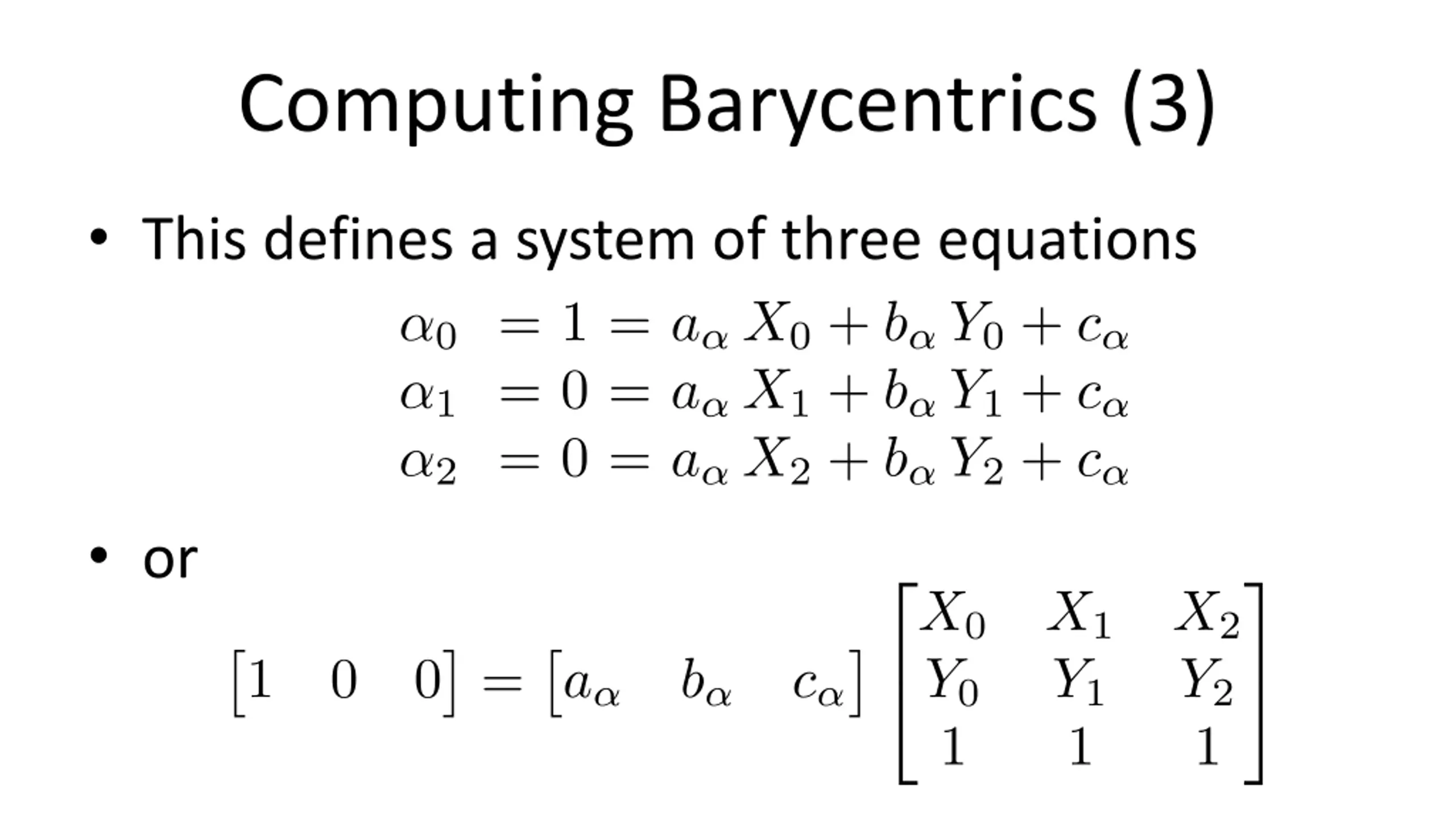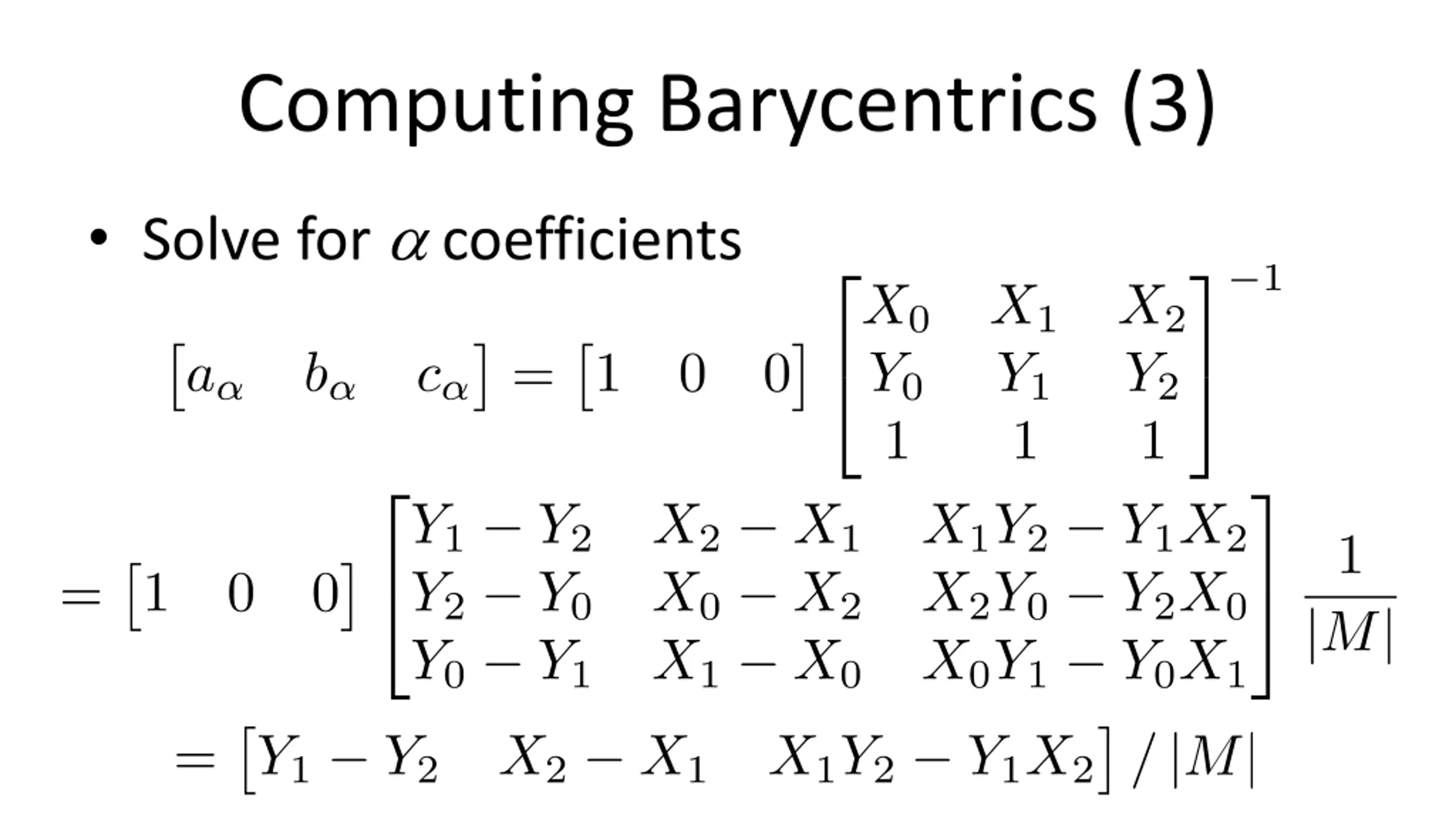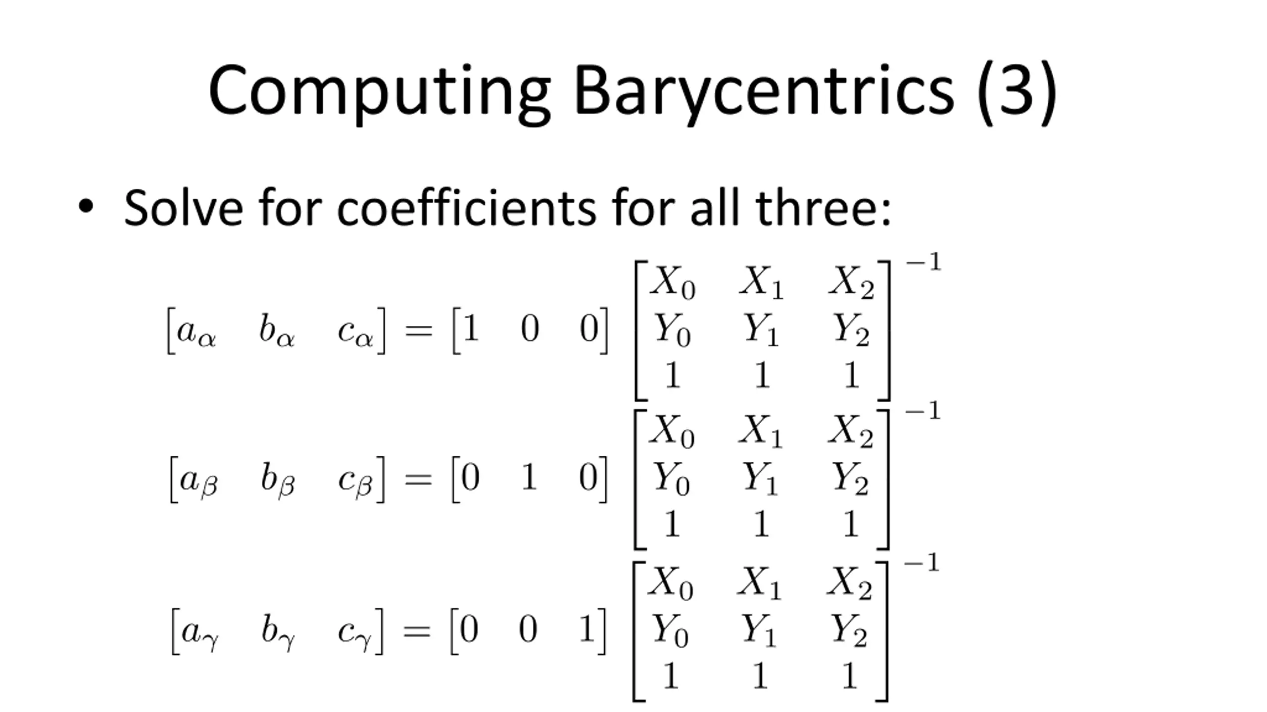 Computing Barycentrics (3) Solve for coefficients for all three: