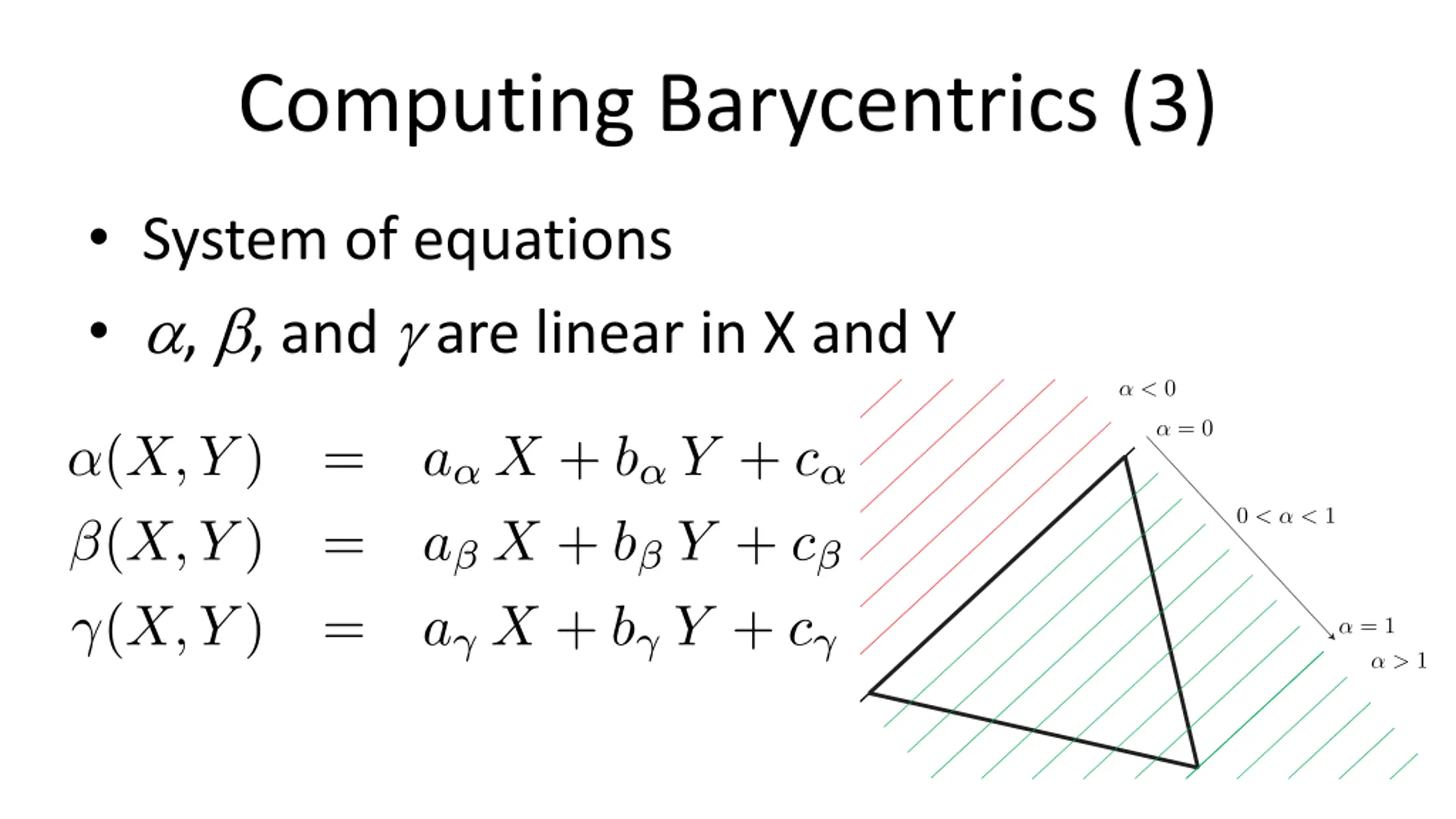 Computing Barycentrics (3) System of equations , , and are linear in X and Y