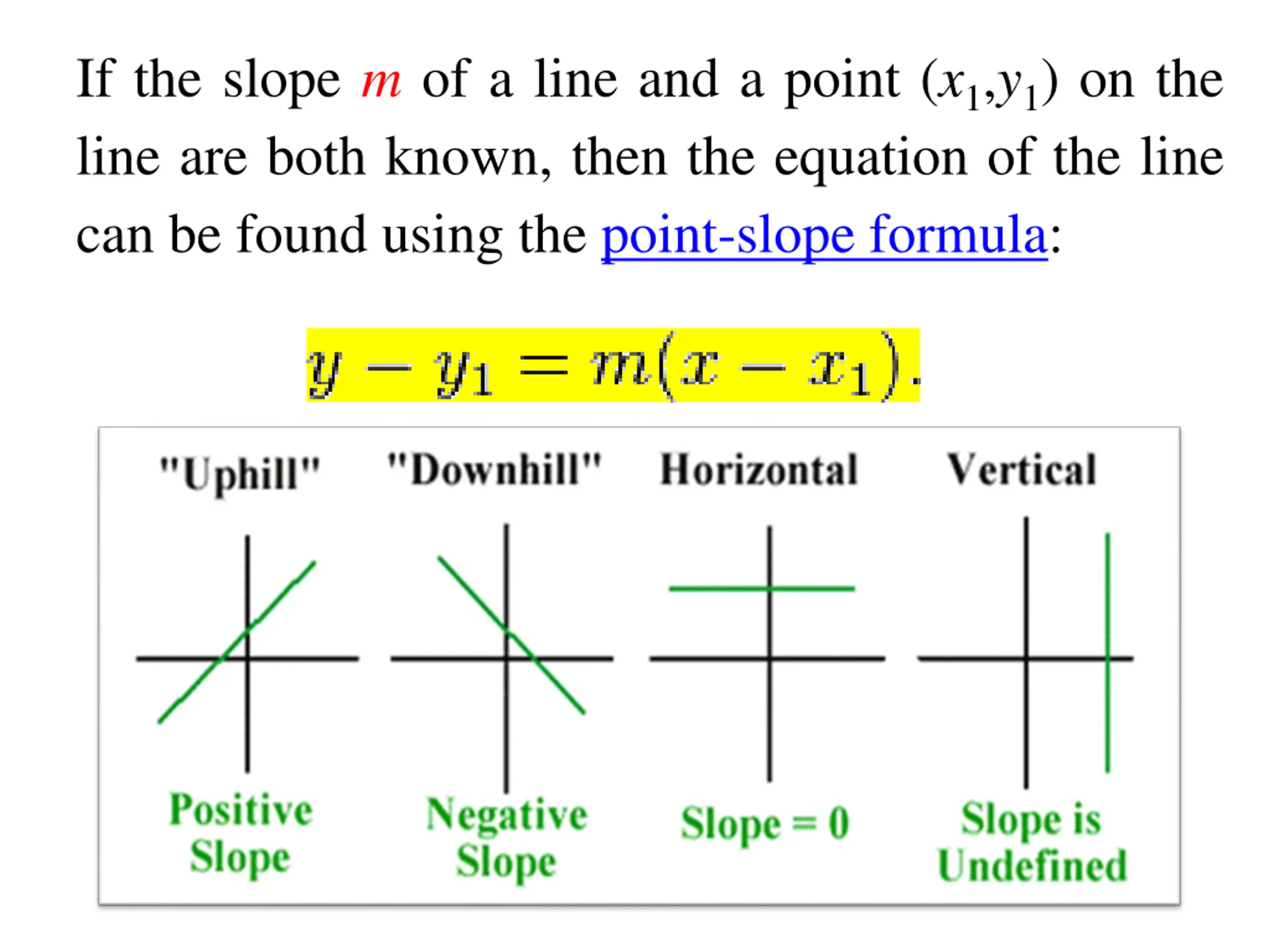 If the slope m of a line and a point (x1,y1) on the line are both known, then the equation of the line can be found using the point-slope formula:
