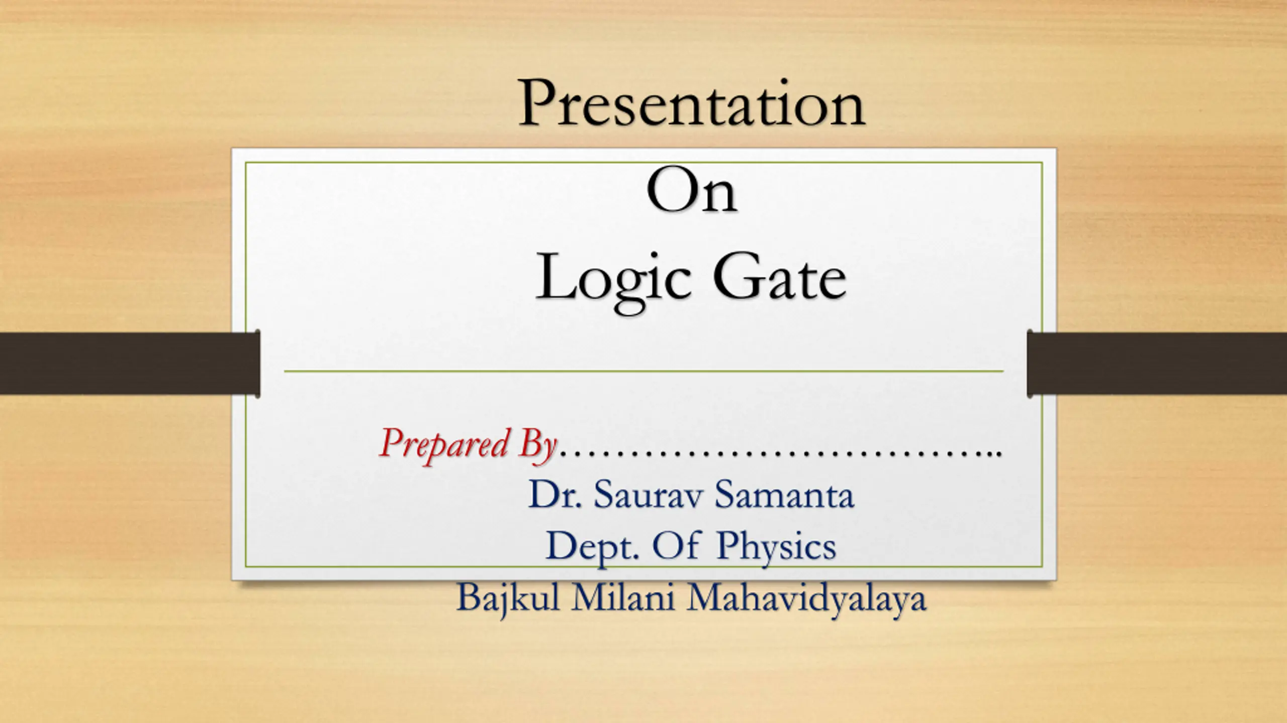 Presentation On Logic Gate Prepared By .. Dr. Saurav Samanta Dept. Of Physics Bajkul Milani Mahavidyalaya