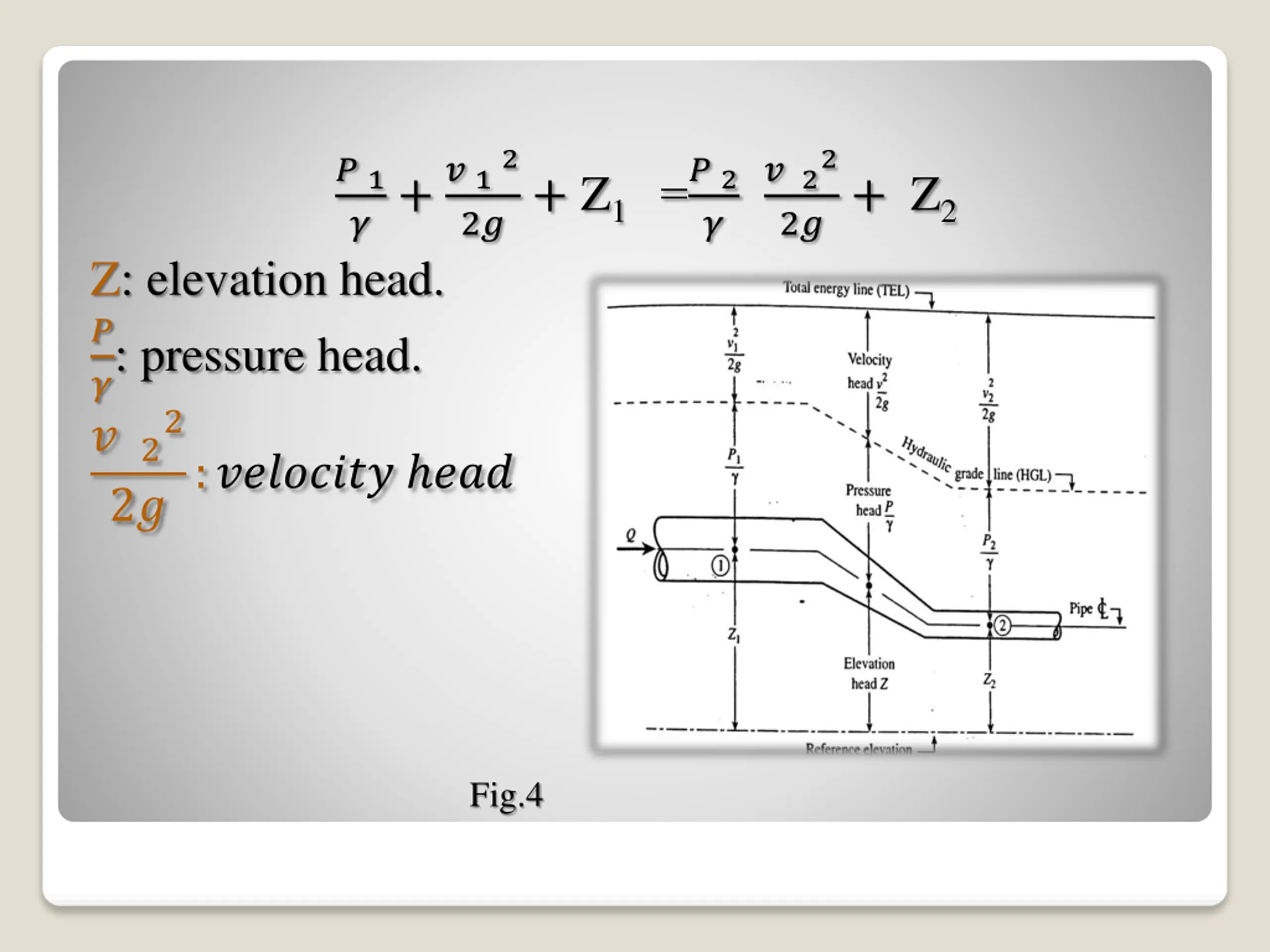 ? 1 ?+? 12 ? 22 2?+ Z2 2?+ Z1 =? 2 ? Z: elevation head. ? ?: pressure head. ? 22 2?:???????? ??? Fig.4