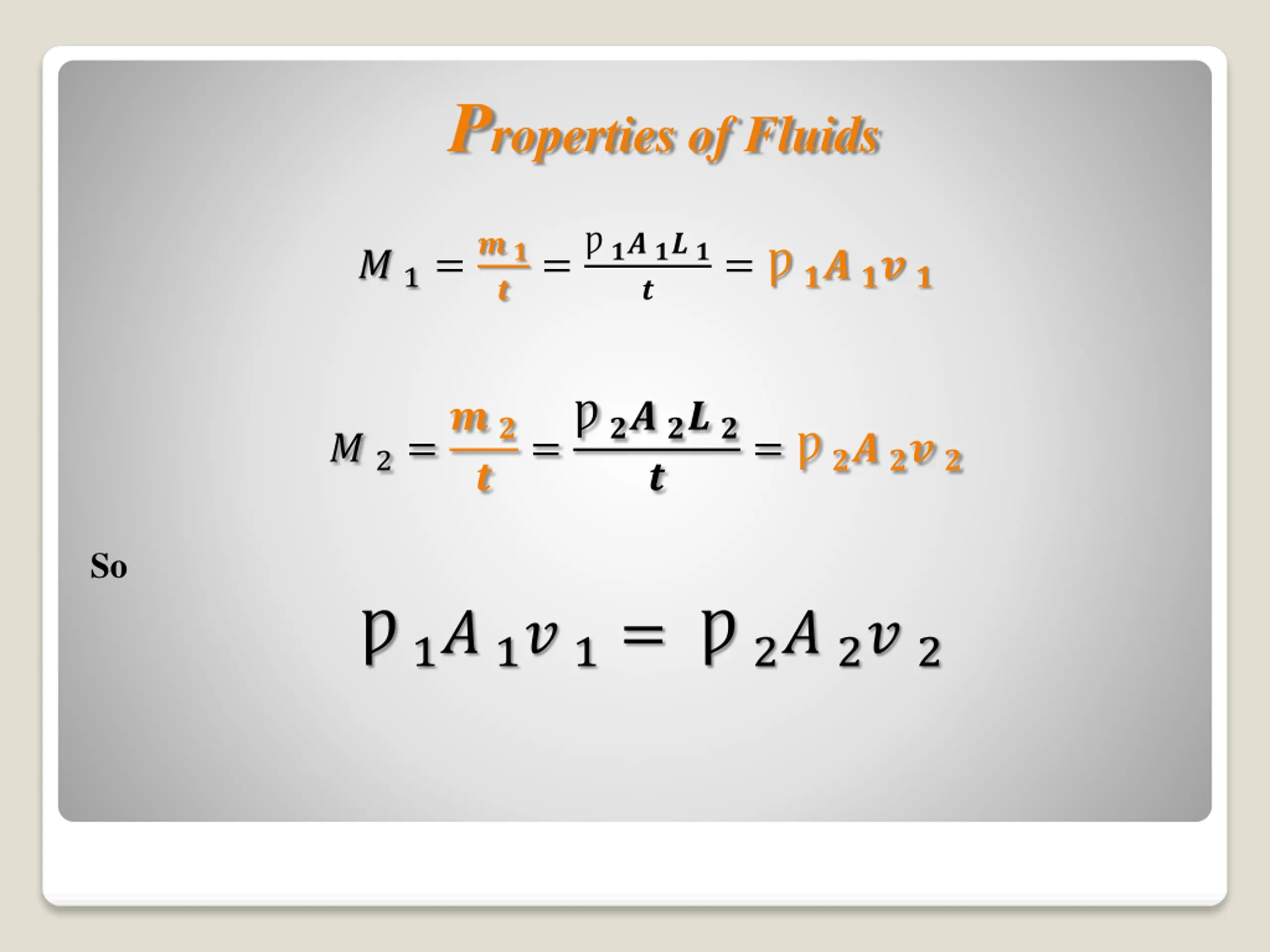 Properties of Fluids ? 1=? ? ?= ?? ?? ? = ?? ?? ? ? ? 2=? ? = ?? ?? ? = ?? ?? ? ? ? So 1? 1? 1= 2? 2? 2