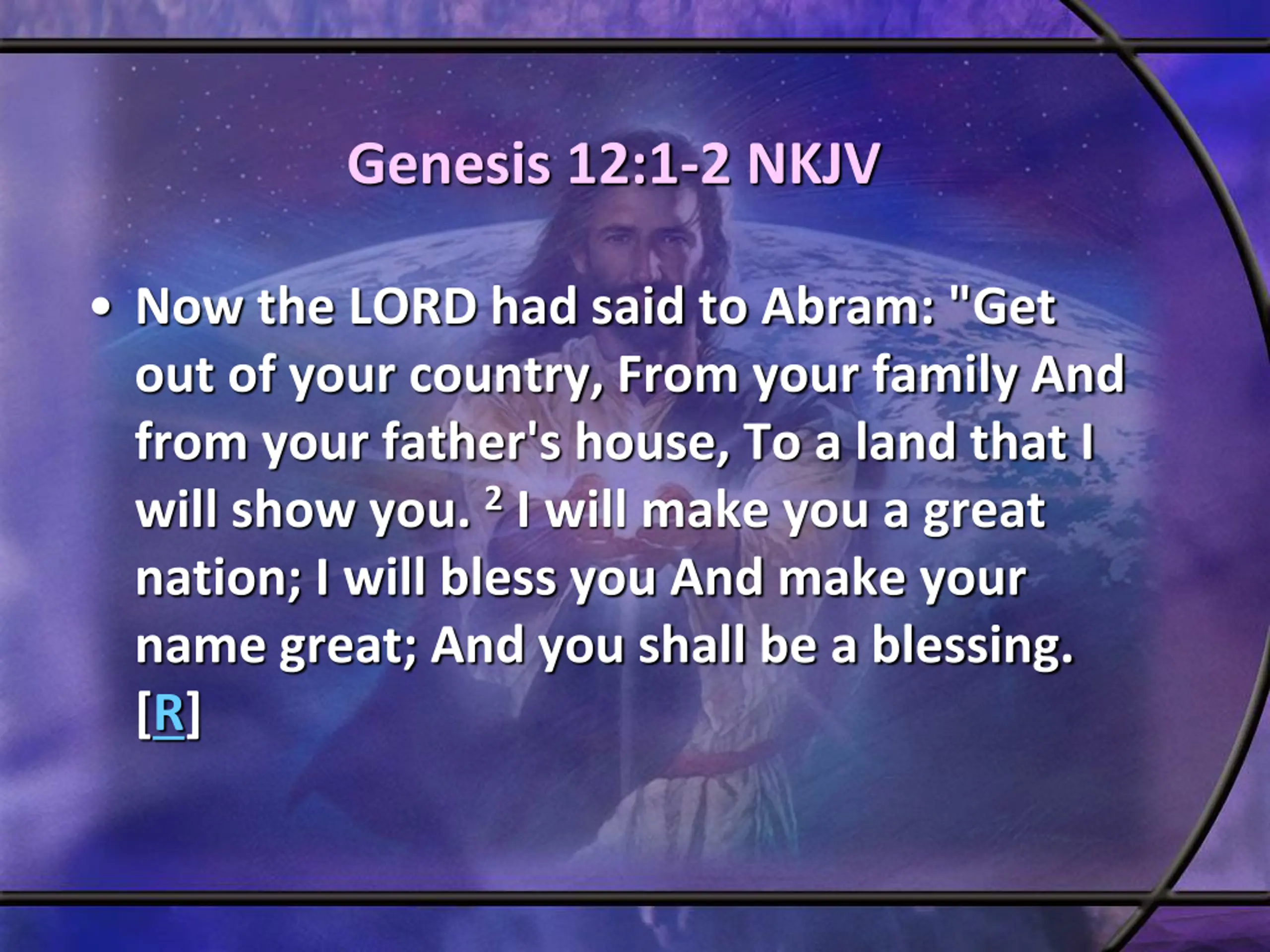 Genesis 12:1-2 NKJV Now the LORD had said to Abram: "Get out of your country, From your family And from your father's house, To a land that I will show you. 2I will make you a great nation; I will bless you And make your name great; And you shall be a blessing. [R]