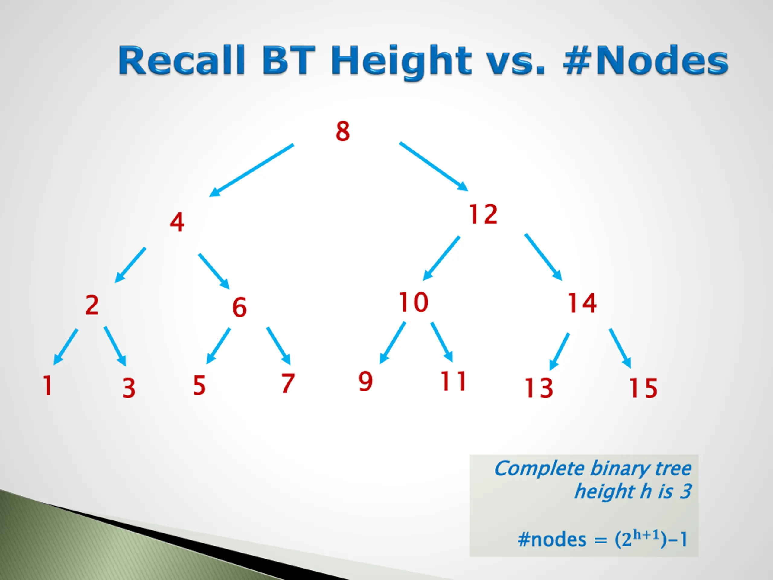 8 8 12 12 4 4 10 10 14 14 2 2 6 6 11 11 9 9 7 7 5 5 1 1 3 3 13 13 15 15 Complete binary tree eight h is 3 Complete binary tree h height h is 3 #nodes = ( #nodes = (??+?) )- -1 1