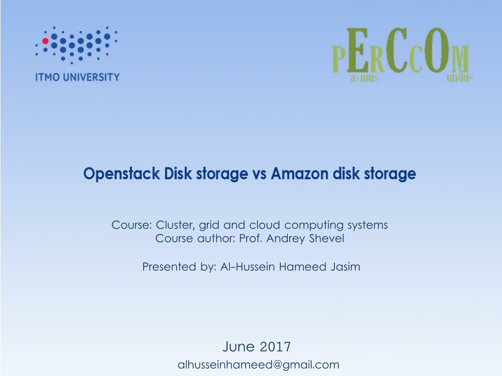 Course: Cluster, grid and cloud computing systems Course author: Prof. Andrey Shevel Presented by: Al-Hussein Hameed Jasim June 2017 alhusseinhameed@gmail.com