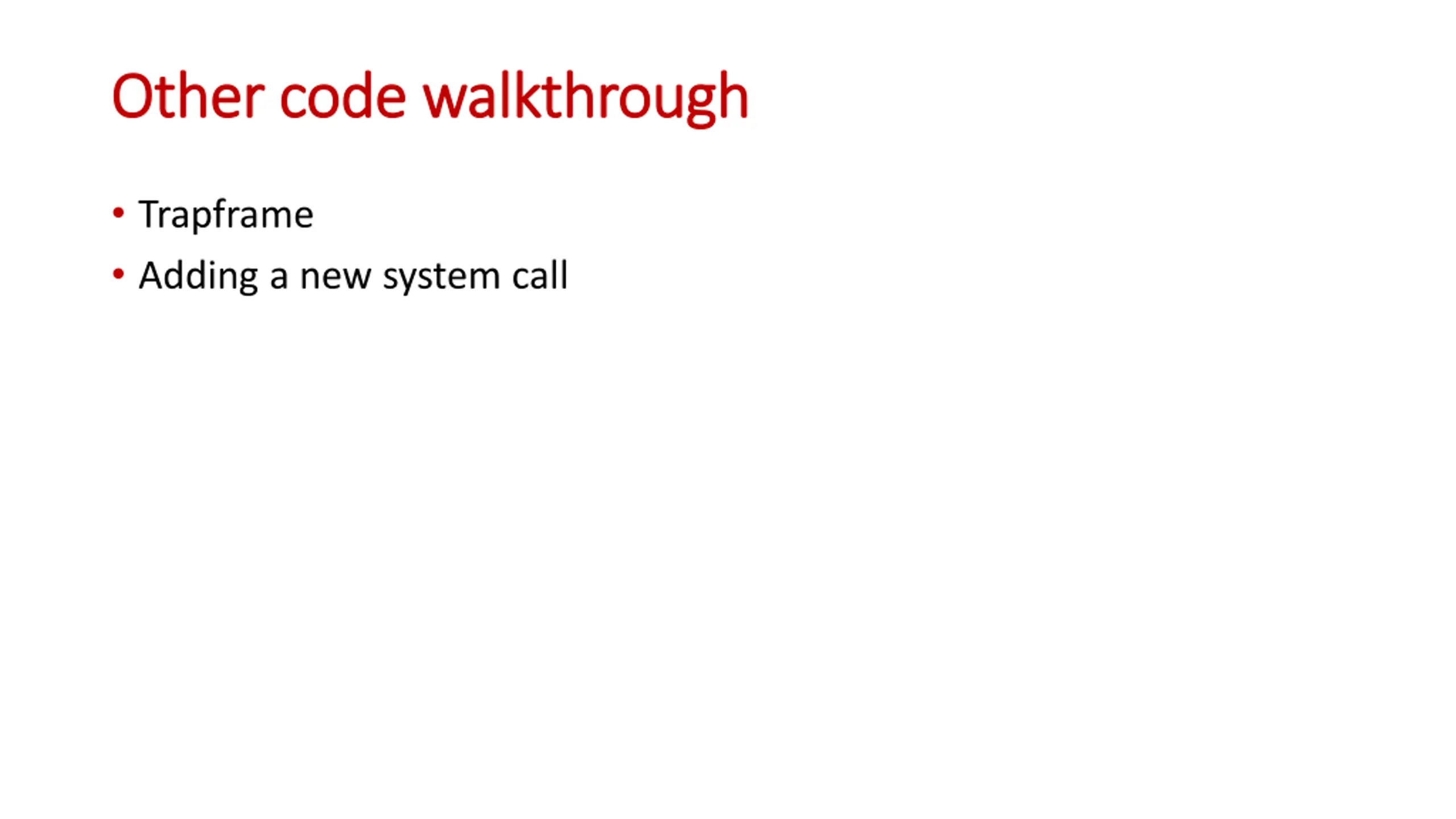Other code walkthrough Other code walkthrough Trapframe Adding a new system call